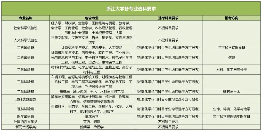 以下是浙江大学新高考选科要求