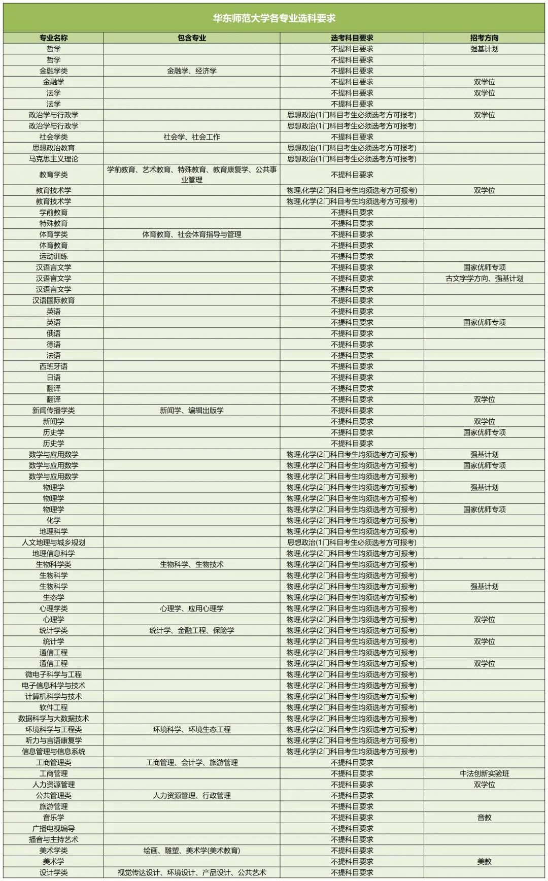 以下是华东师范大学新高考选科要求: