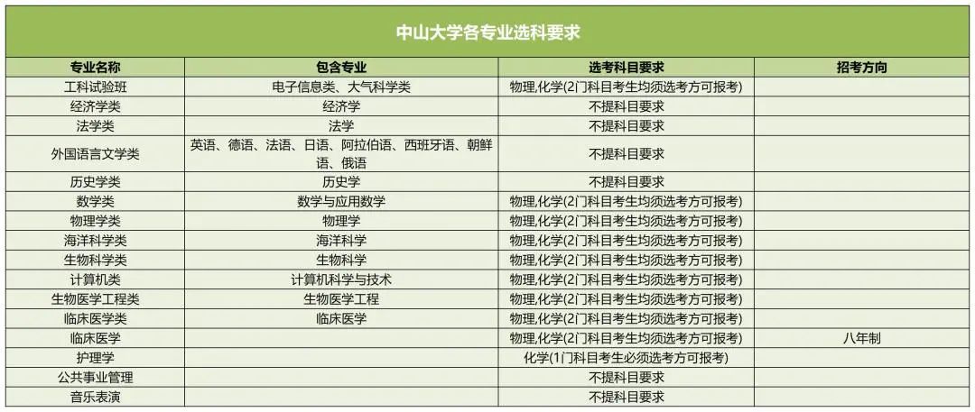 以下是中山大学新高考选科要求