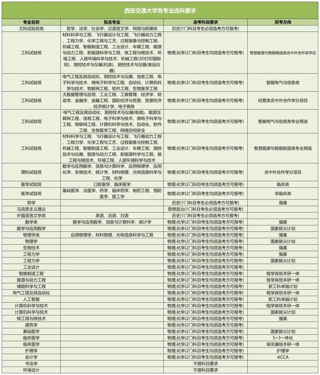 以下是西安交通大学新高考选科要求: