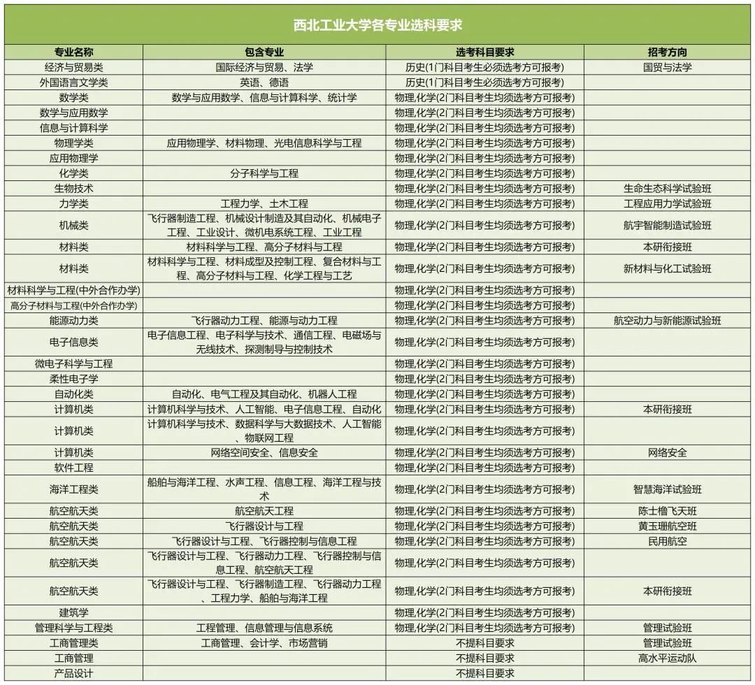 以下是西北工业大学新高考选科要求: