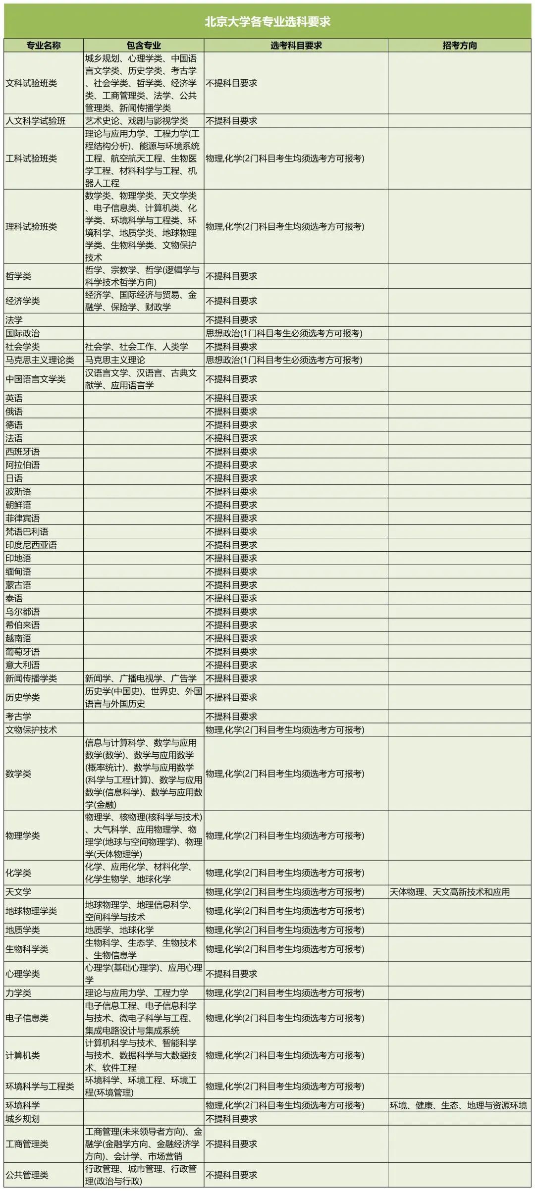 2024年报考北京大学需要选考物理+化学的专业有环境科学、力学类、工科试验班、理科试验班、电子信息类、计算机类、环境科学与工程类、文物保护技术、数学类、物理学类、化学类、天文学、地球物理学类、地质学类、生物科学类专业;