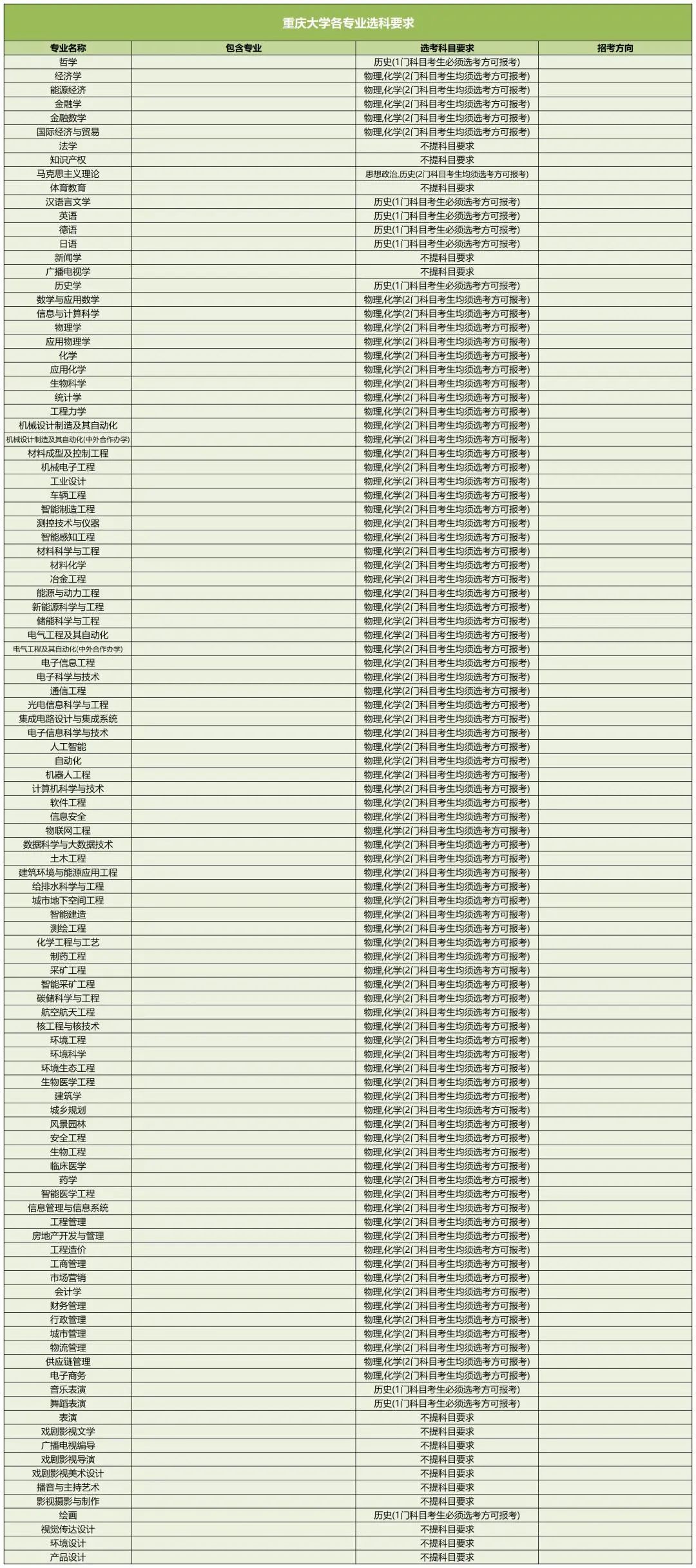 以下是重庆大学新高考选科要求: