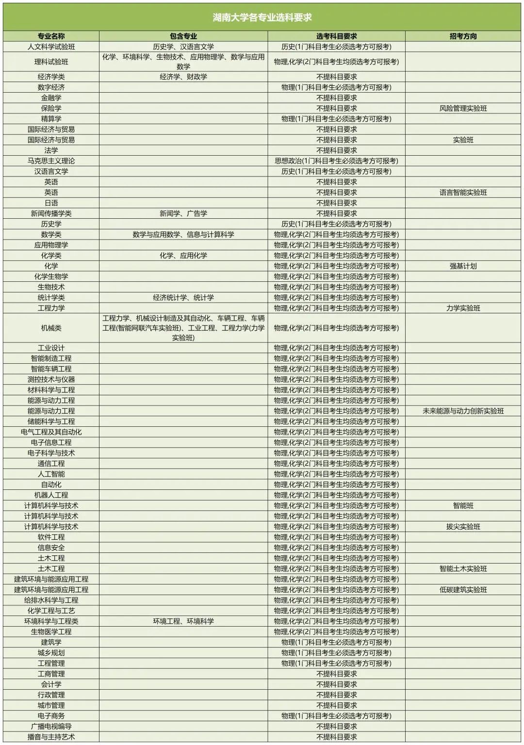 以下是湖南大学新高考选科要求: