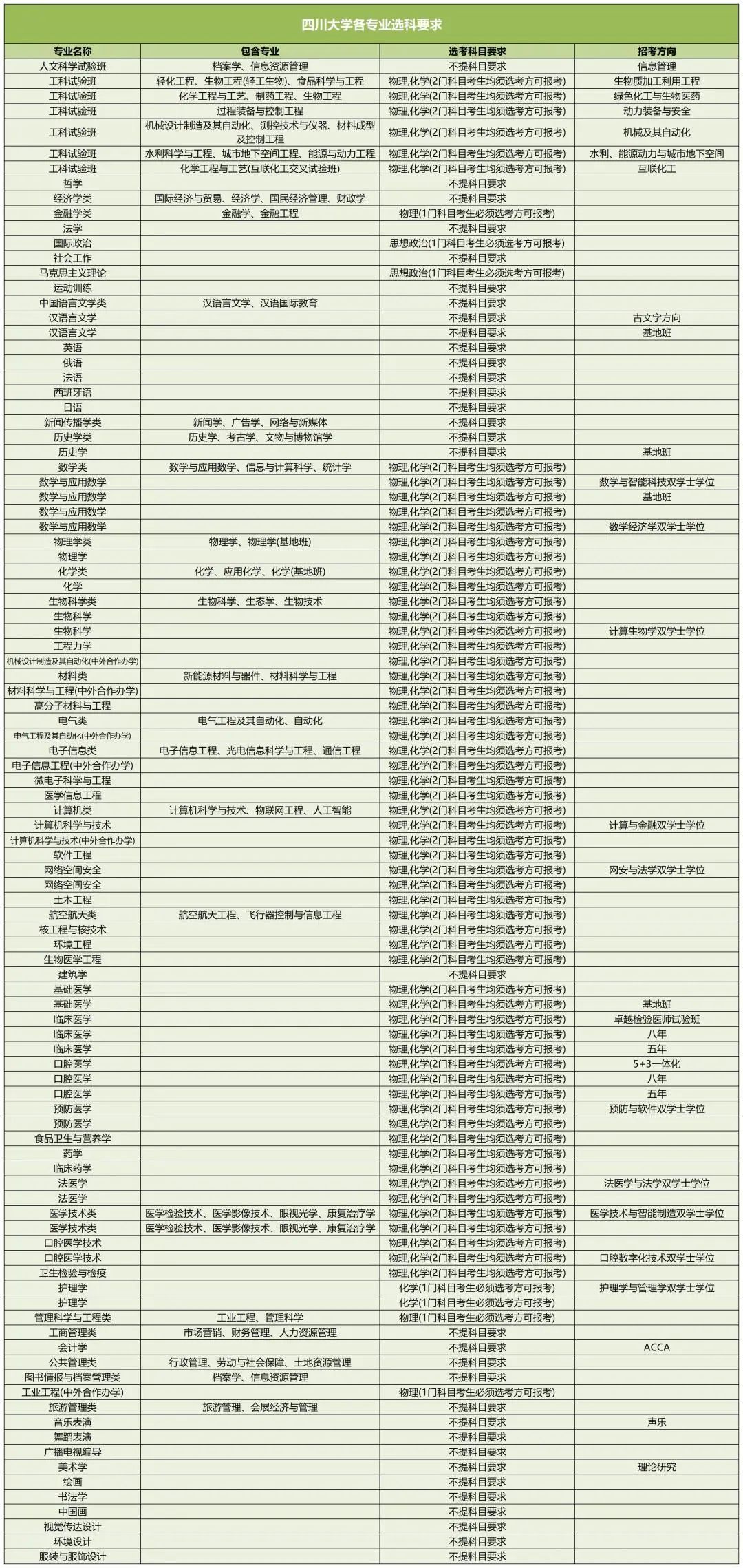 以下是四川大学新高考选科要求: