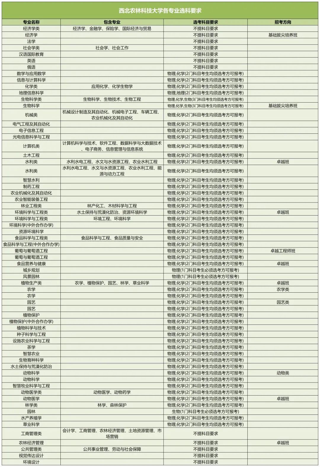 以下是西北农林科技大学新高考选科要求: