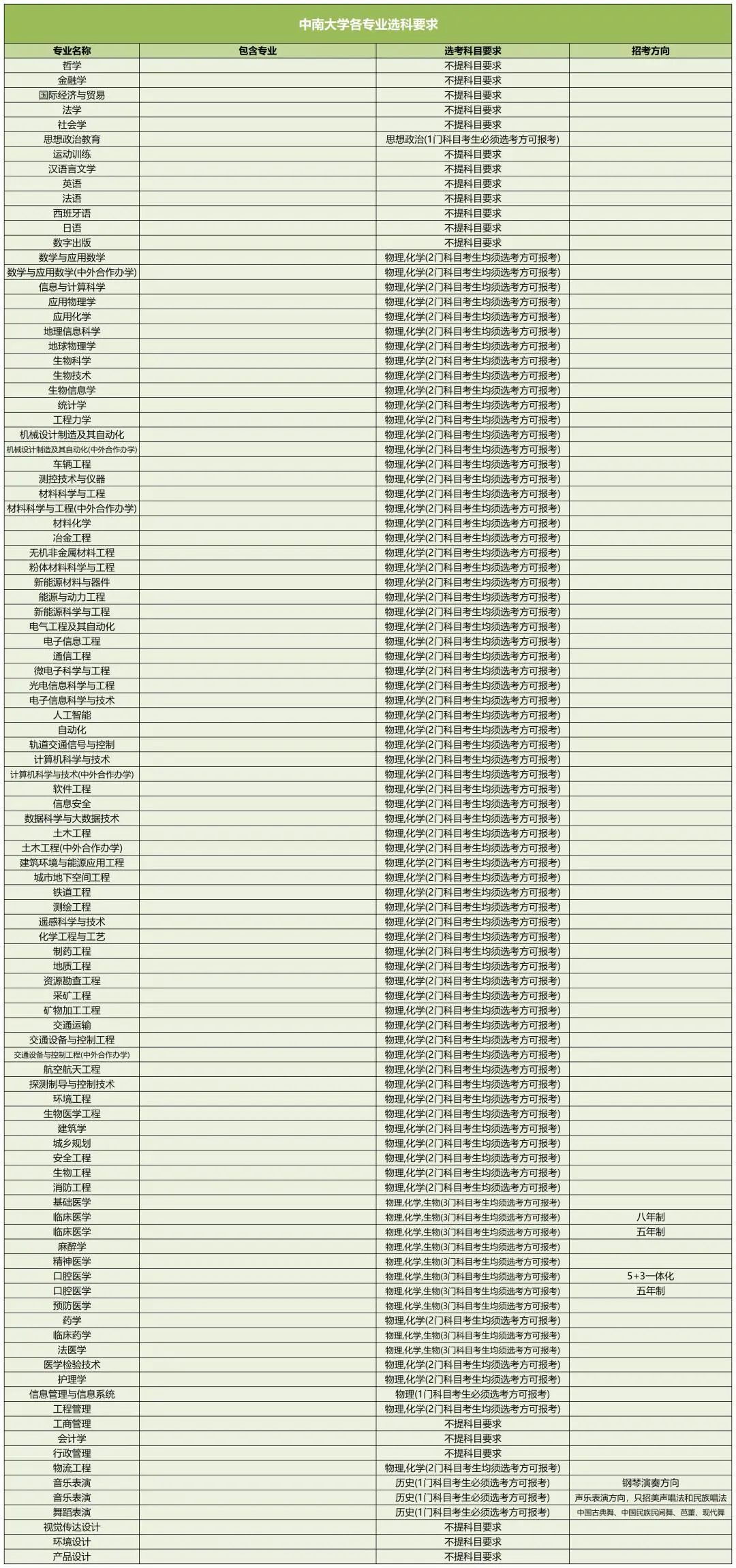 以下是中南大学新高考选科要求:
