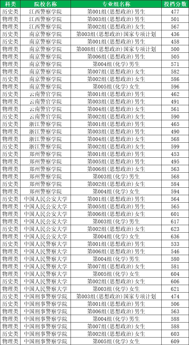 注:警校投档分数线若不退档,即可视为录取分数线。目前各省提前批警校分数线正在陆续出炉中,这里只统计公安警校分数线。