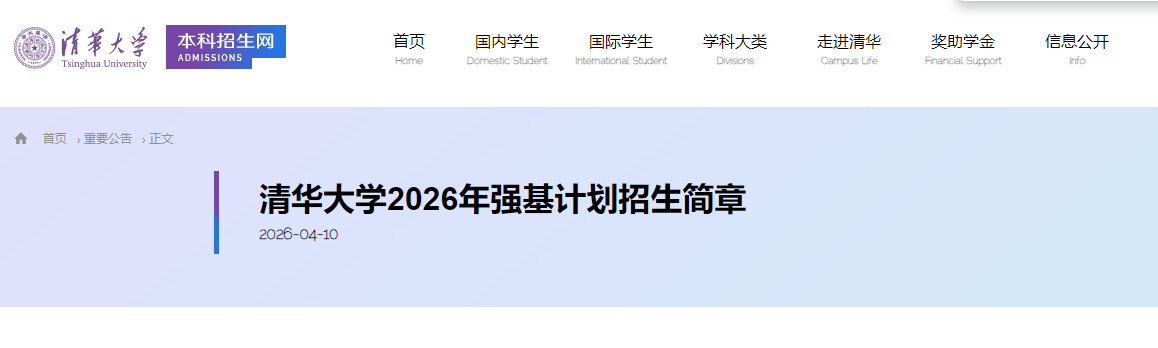 一、清华大学强基计划2026招生简章