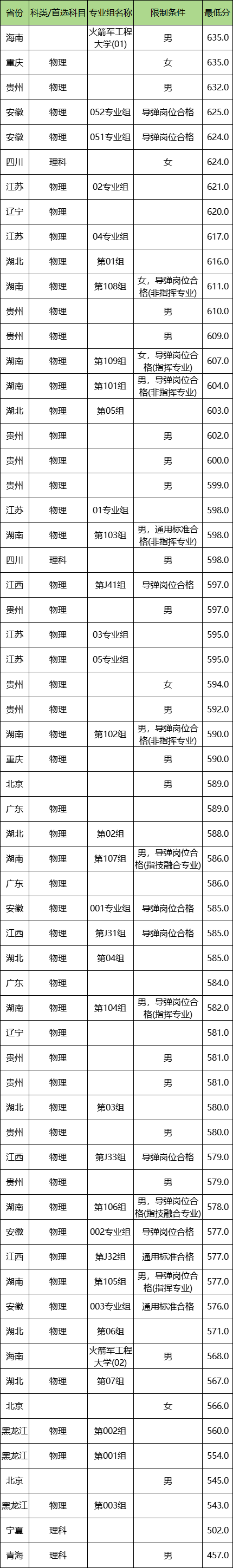2024年火箭军工程大学在各省的招录分数都不一样,具体如下: