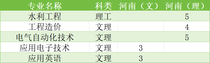 而在外省的招生专业包含水利工程、工程造价、电气自动化技术、应用电子技术、应用英语等。