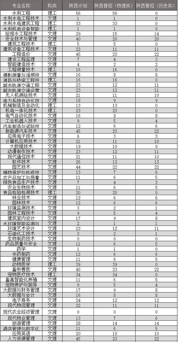 二、陕西农林职业技术大学2025招生计划