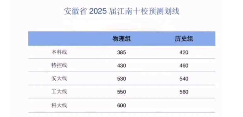 目前,2025年江南十校一模的官方分数线尚未正式公布,预计出炉时间在3月15日,届时本文会及时同步更新官方信息。下面附上网络版预估分数线,暂供参考: