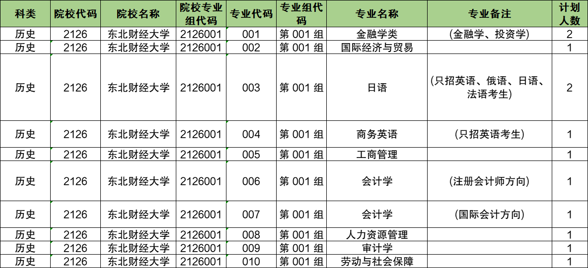第001组:专业组代码为2126001,包含专业金融学类、国际经济与贸易、日语、商务英语、工商管理、会计学、会计学、人力资源管理、审计学、劳动与社会保障。