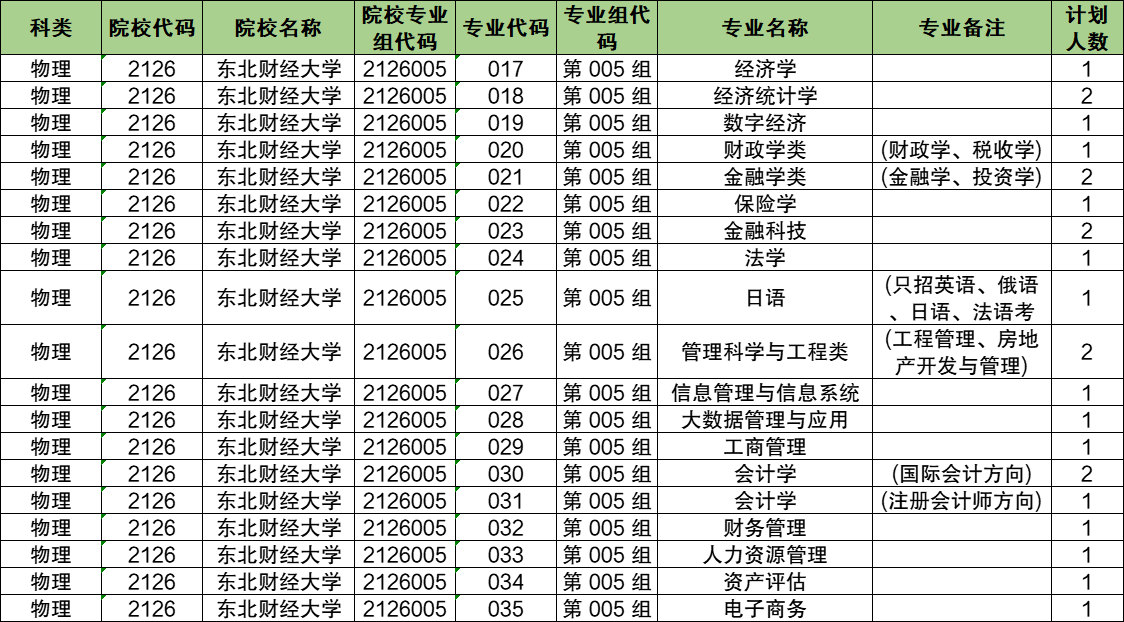 2、2024年东北财经大学物理科目招生人数共计55人。