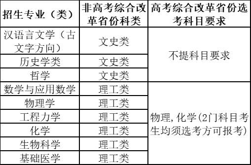 2024年四川大学强基计划的招生专业为汉语言文学(古文字方向)、历史学类(含历史学、考古学、文物与博物馆学专业)、哲学、数学与应用数学、物理学、工程力学、化学、生物科学、基础医学。