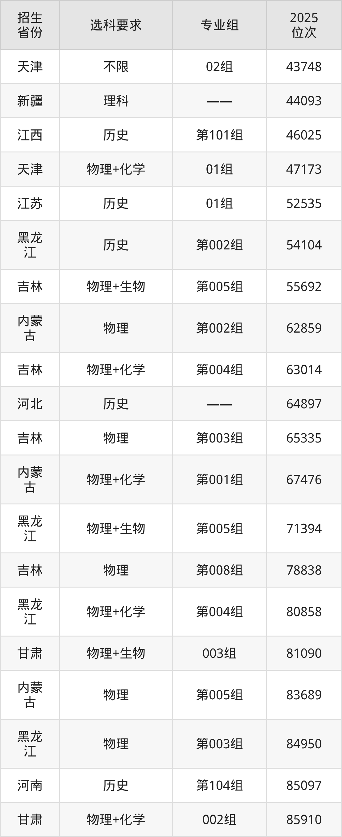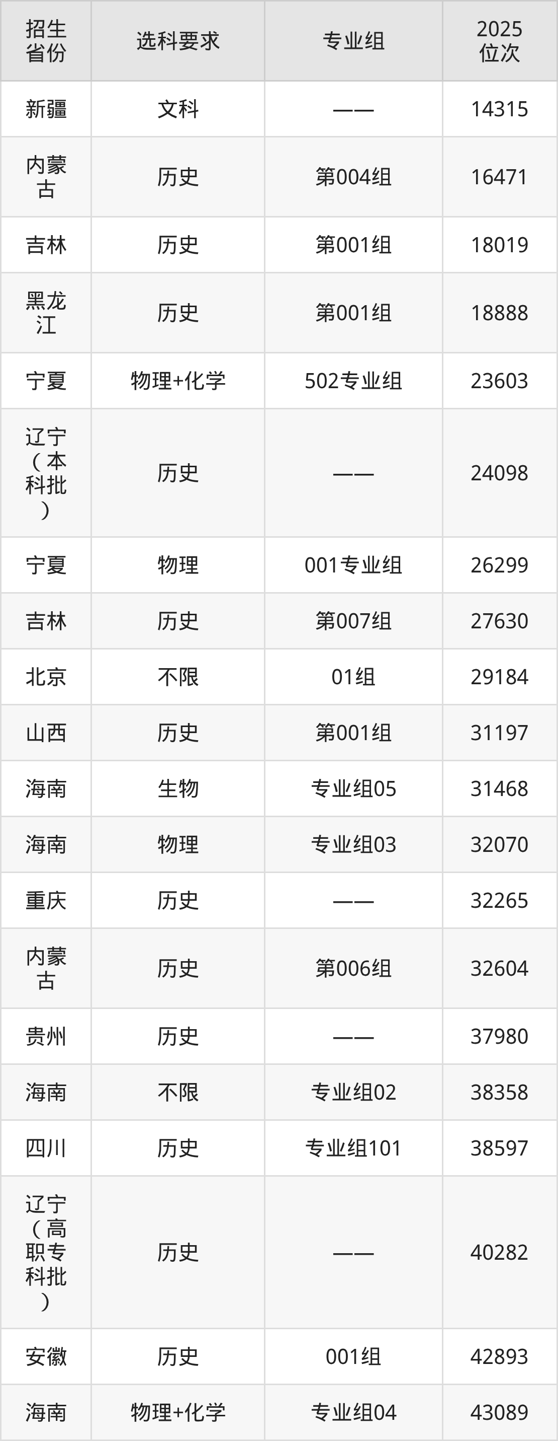 长春科技学院2025年在全国各省的位次差异较大,最高位次是14315位(新疆文科)、最低位次是646239位(山东)。各省具体位次请看下图: