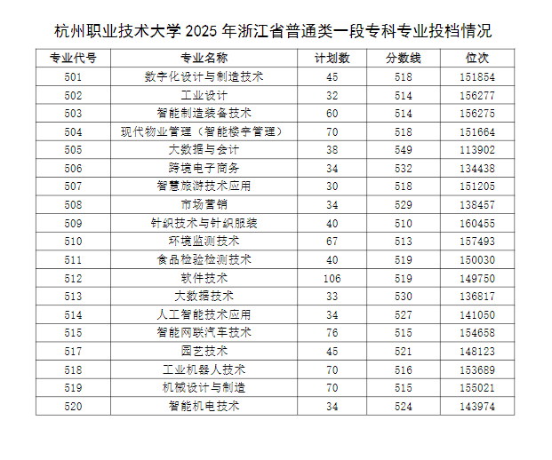 为帮助同学们了解新大学的招生分数门槛,本文将整理汇总杭州职业技术大学2025年录取分数线,并附上2025年招生计划,以供查阅。