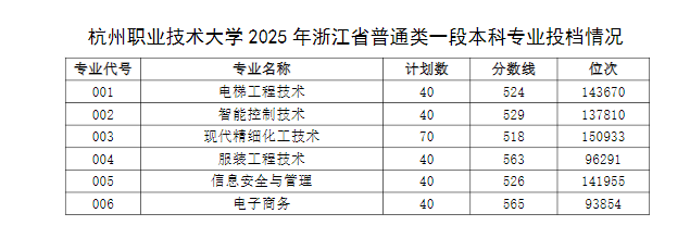 2025年杭州职业技术大学仅面向浙江招收本科生,面向8个省市区招收专科生。根据公布的最新分数表,整理杭州职业技术大学2025录取分数线详情如下: