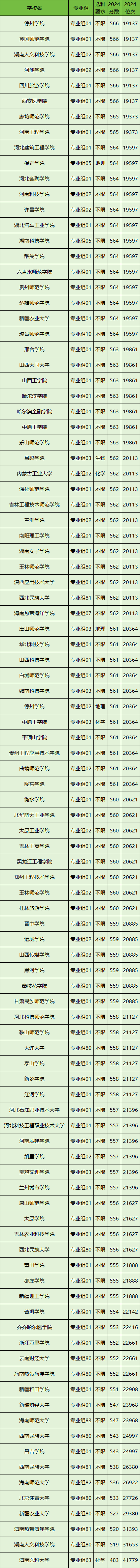 下面是2024年地化生分数线最低的100所公办本科大学一览表。