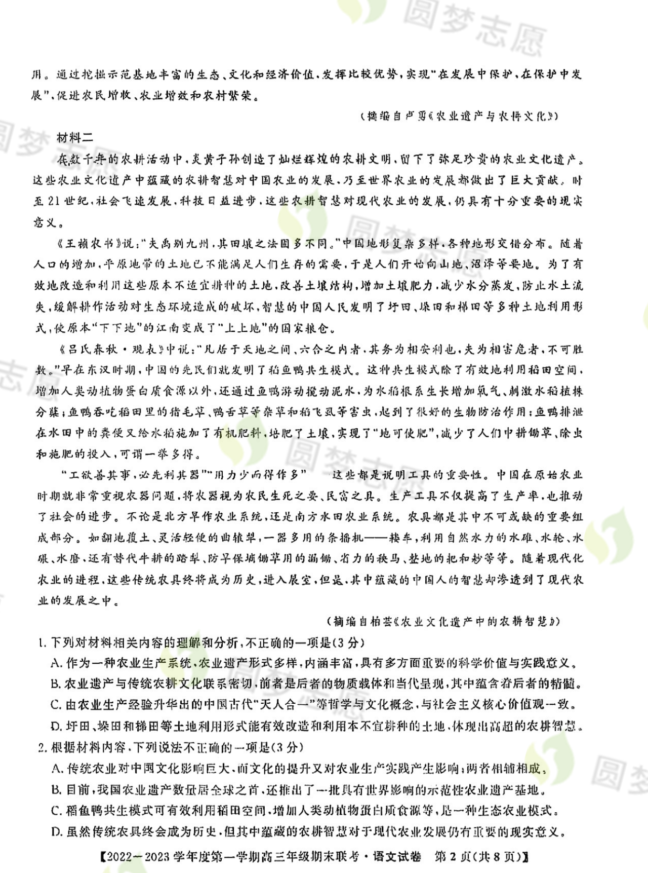 单科试卷真题及参考答案请点击链接查看:https://www.gk100.com/read_562395799.htm