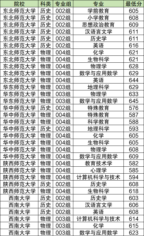 历史类:2024最低投档线为576分(002组),对应的专业为特殊教育;