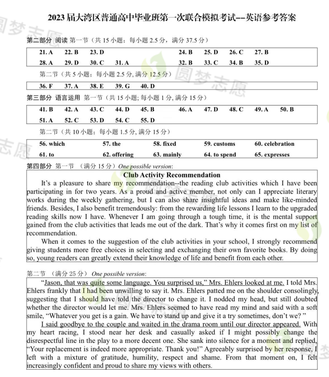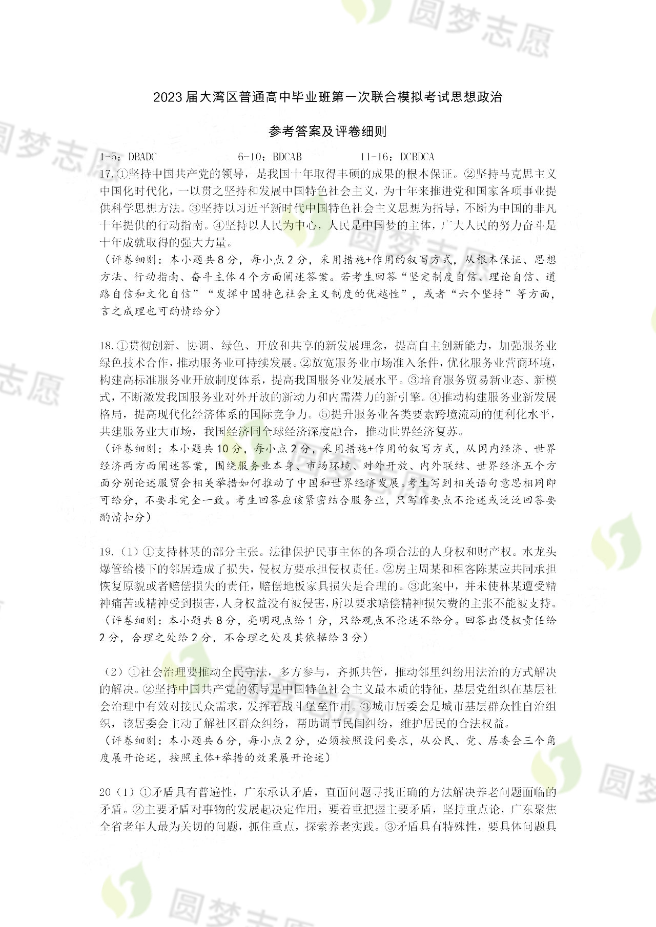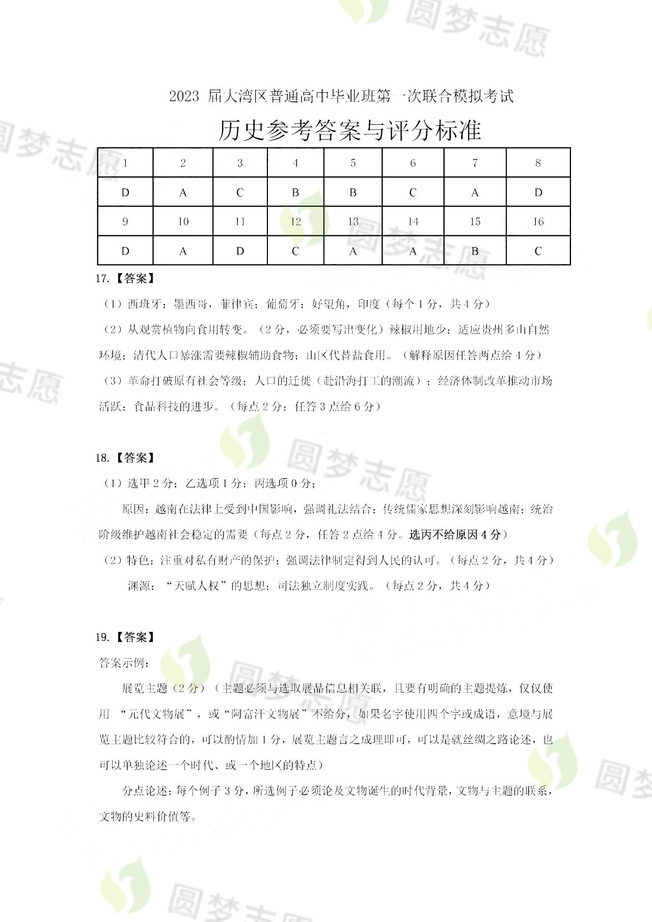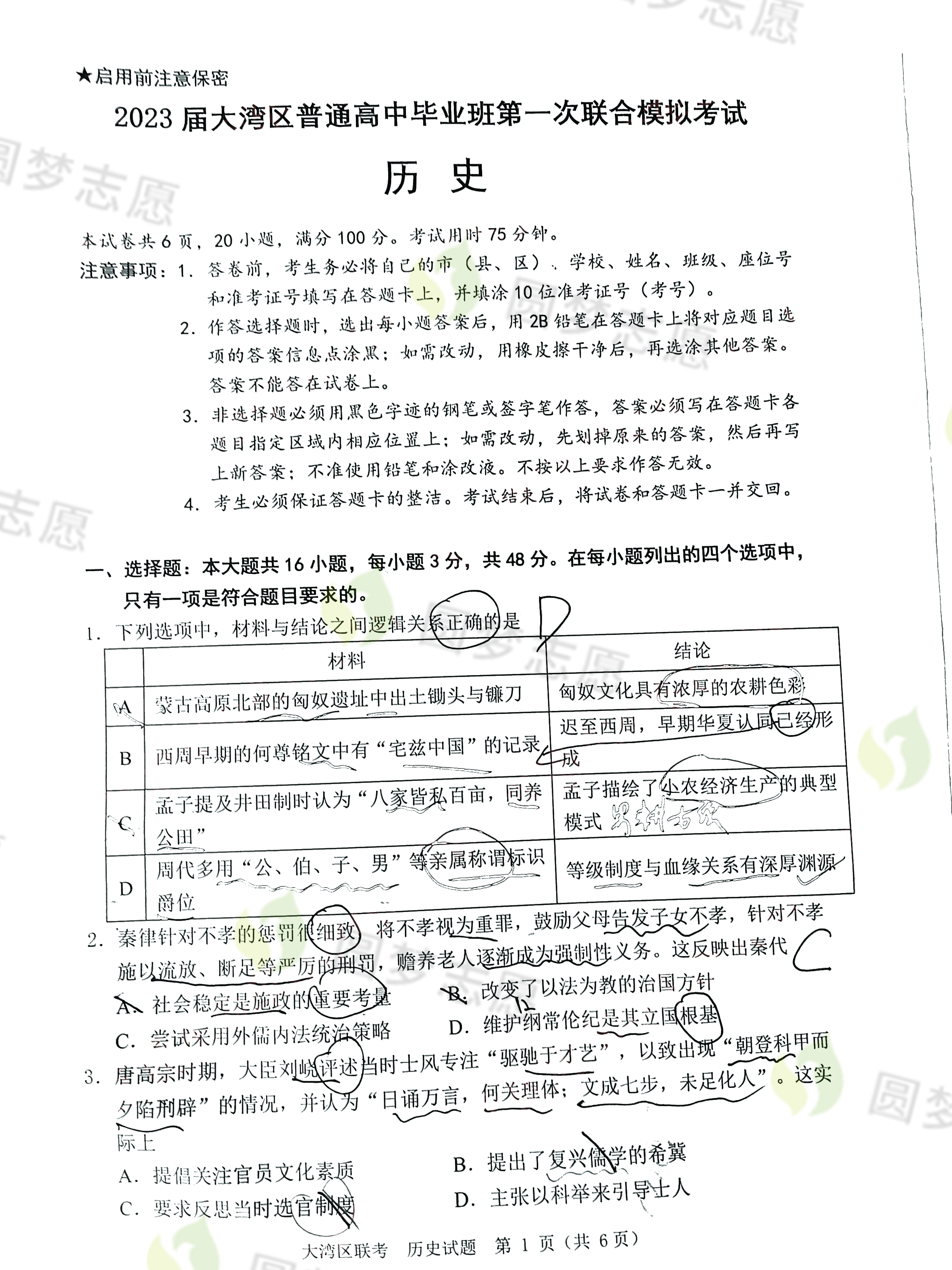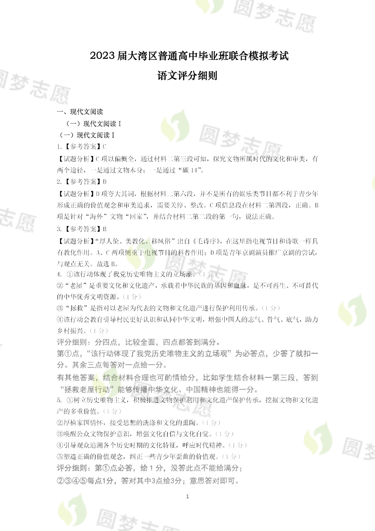 大湾区联考2023答案及试卷高三1月各科汇总正在持续更新,本期为大家整理了2023 年大湾区普通高中毕业班第一次联合模拟考试各科试卷真题以及参考答案解析,含语数英理化生政史地所有官方标准答案,供物理历史类考生参考。