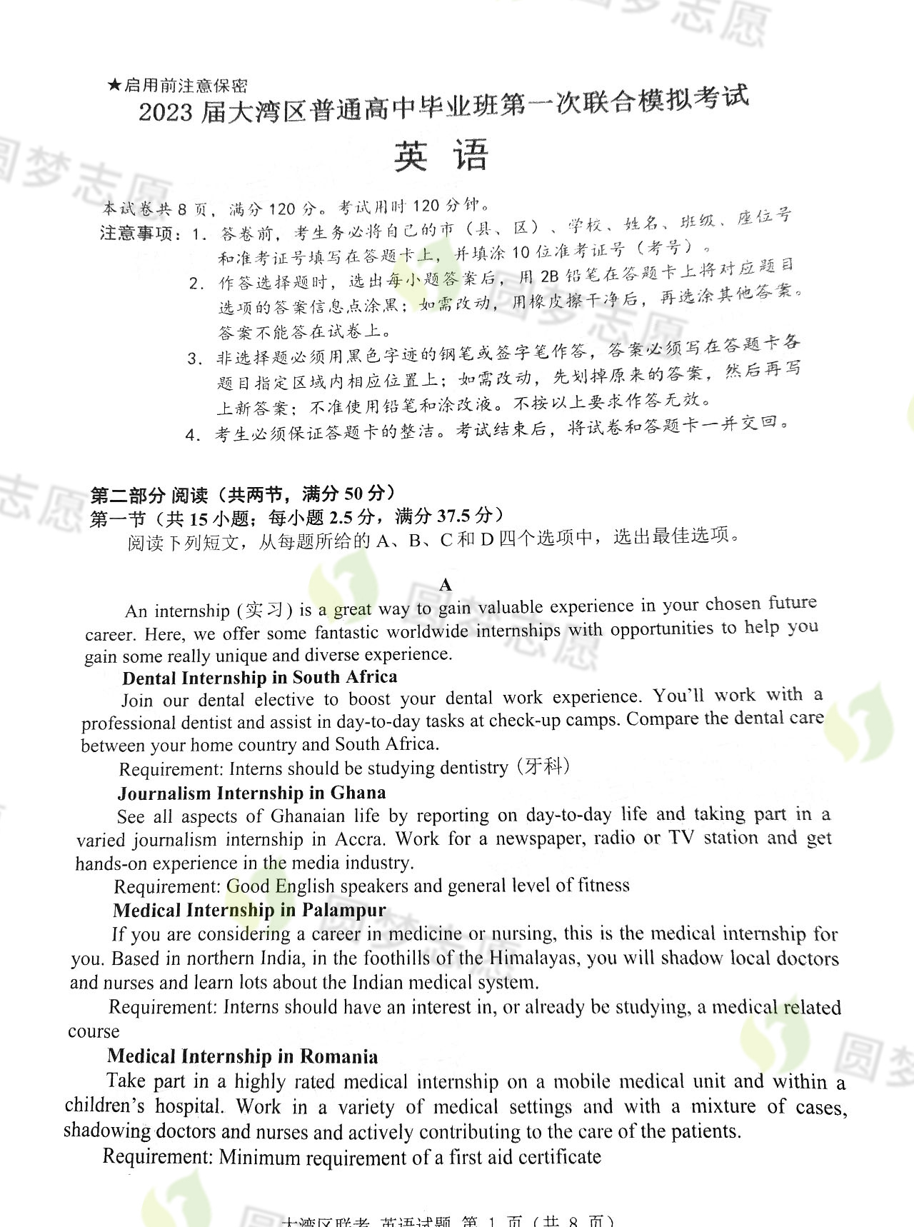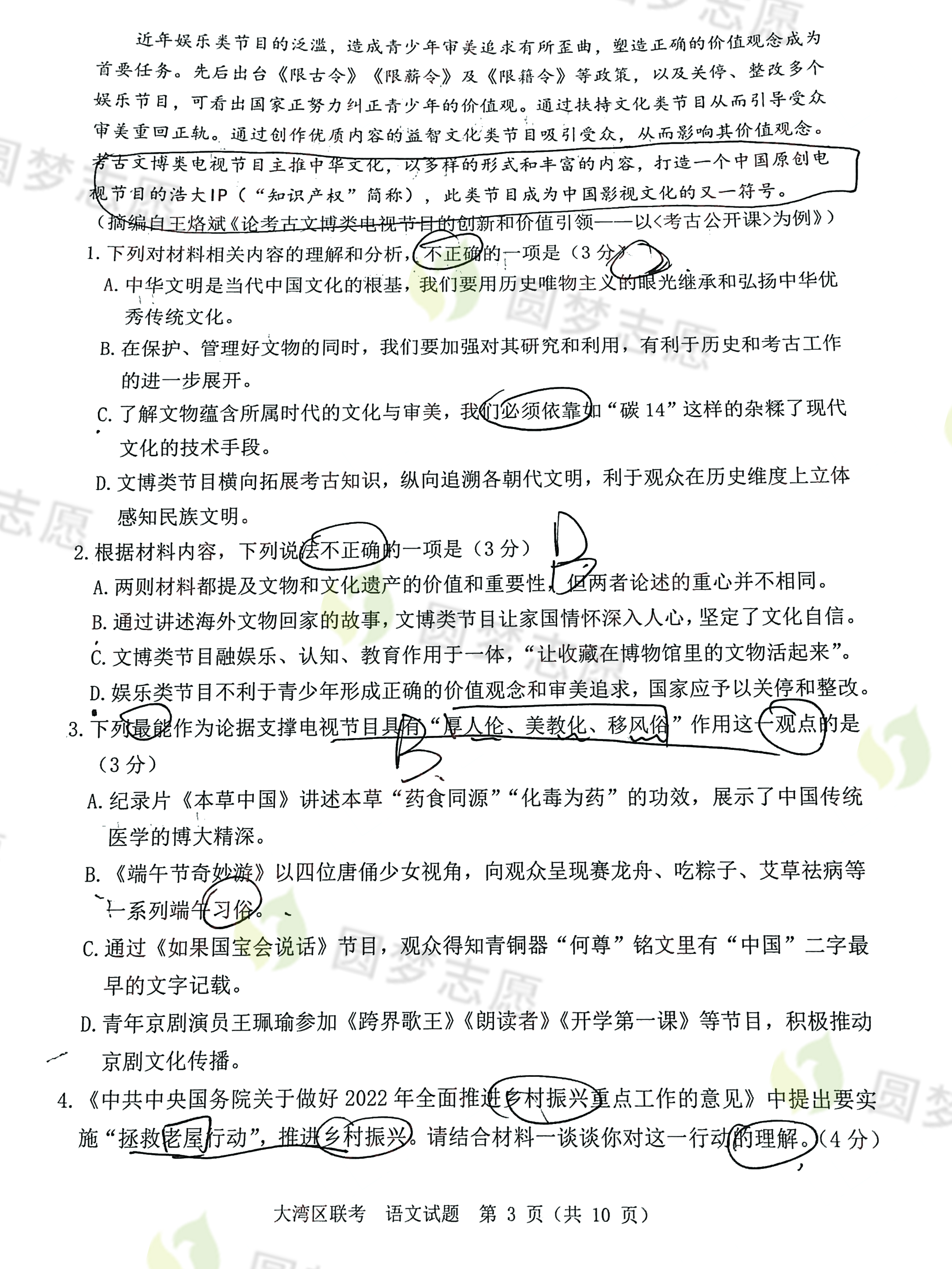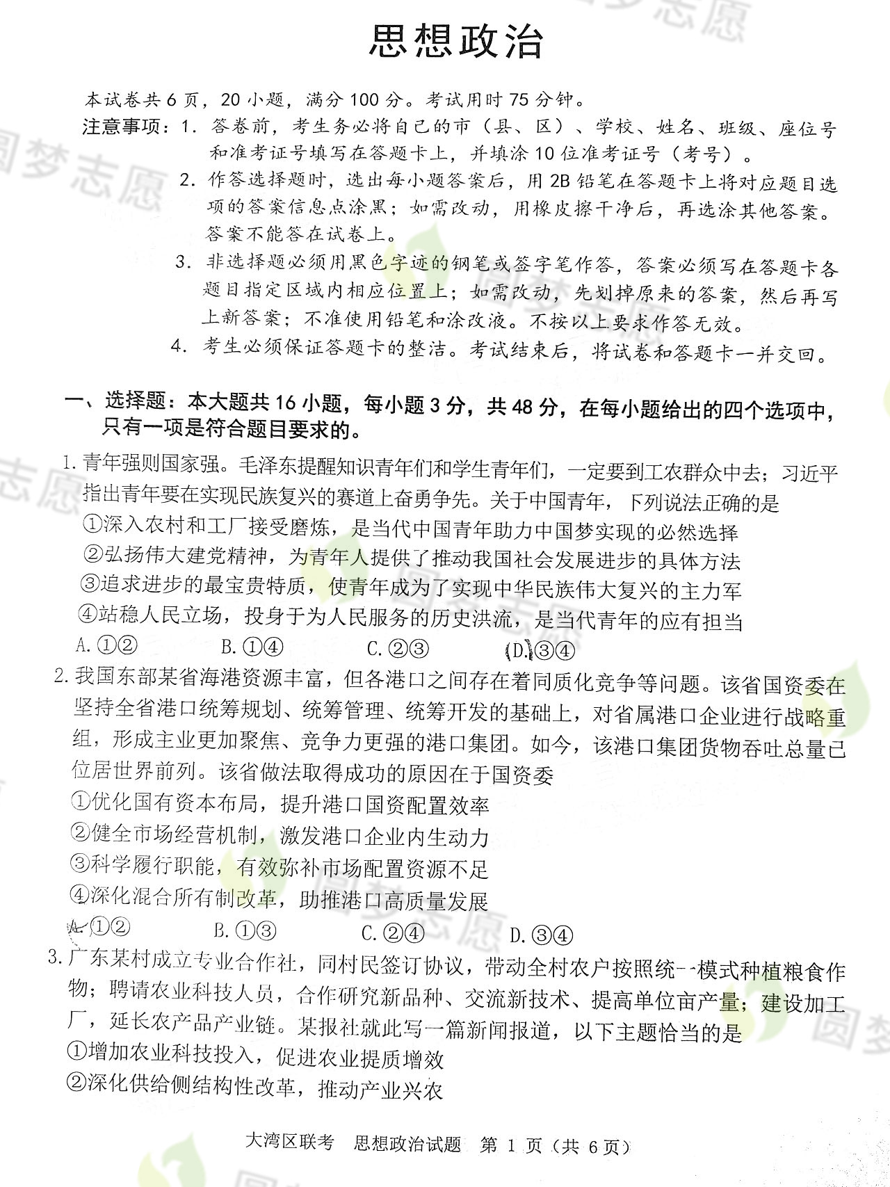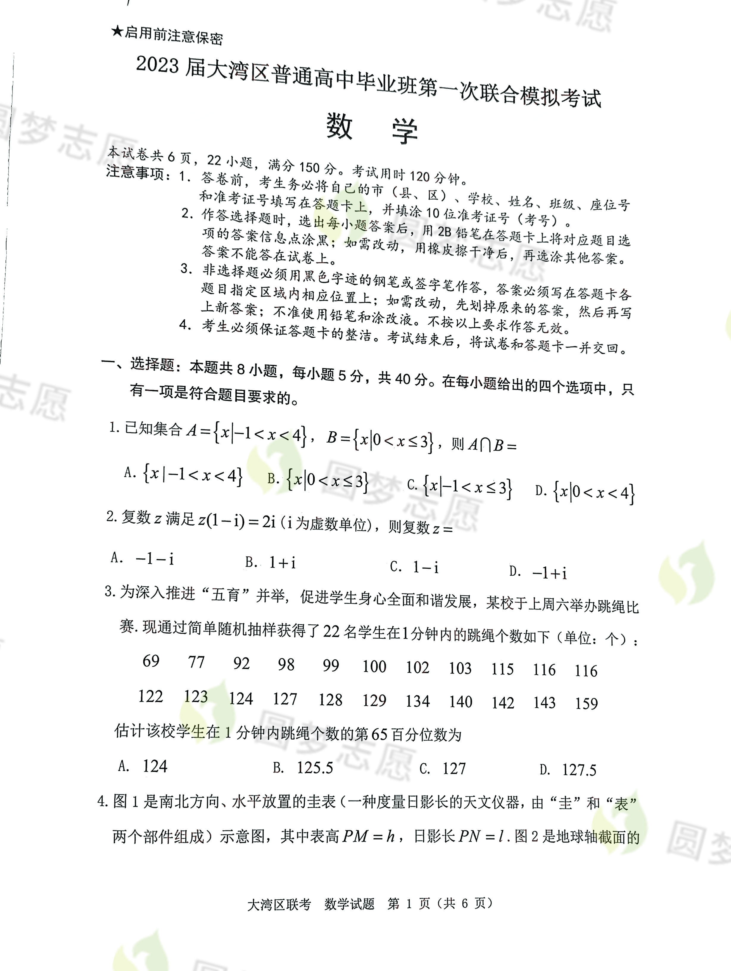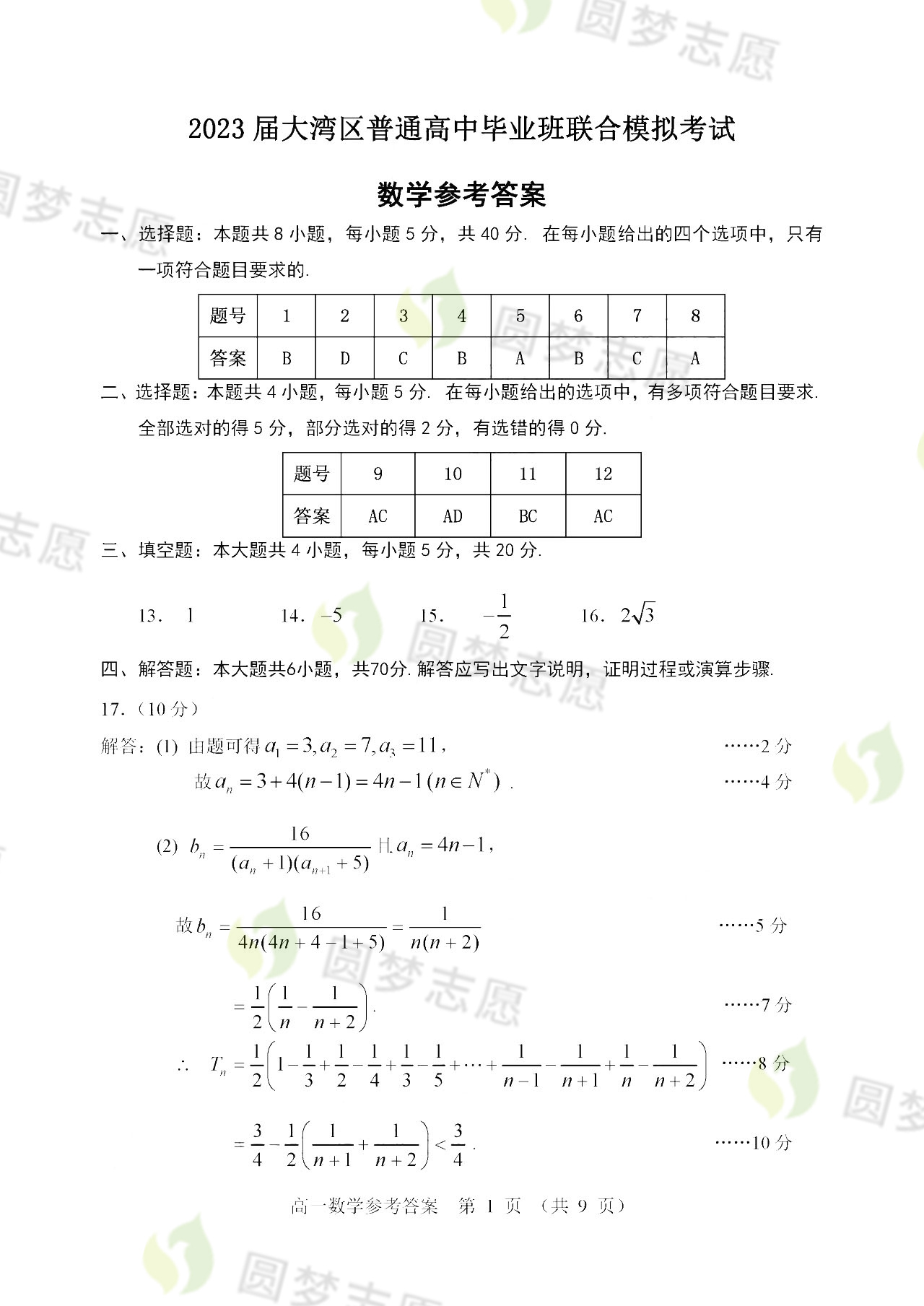 大湾区联考2023答案及试卷高三1月各科汇总正在持续更新,本期为大家整理了2023 年大湾区普通高中毕业班第一次联合模拟考试各科试卷真题以及参考答案解析,含语数英理化生政史地所有官方标准答案,供物理历史类考生参考。