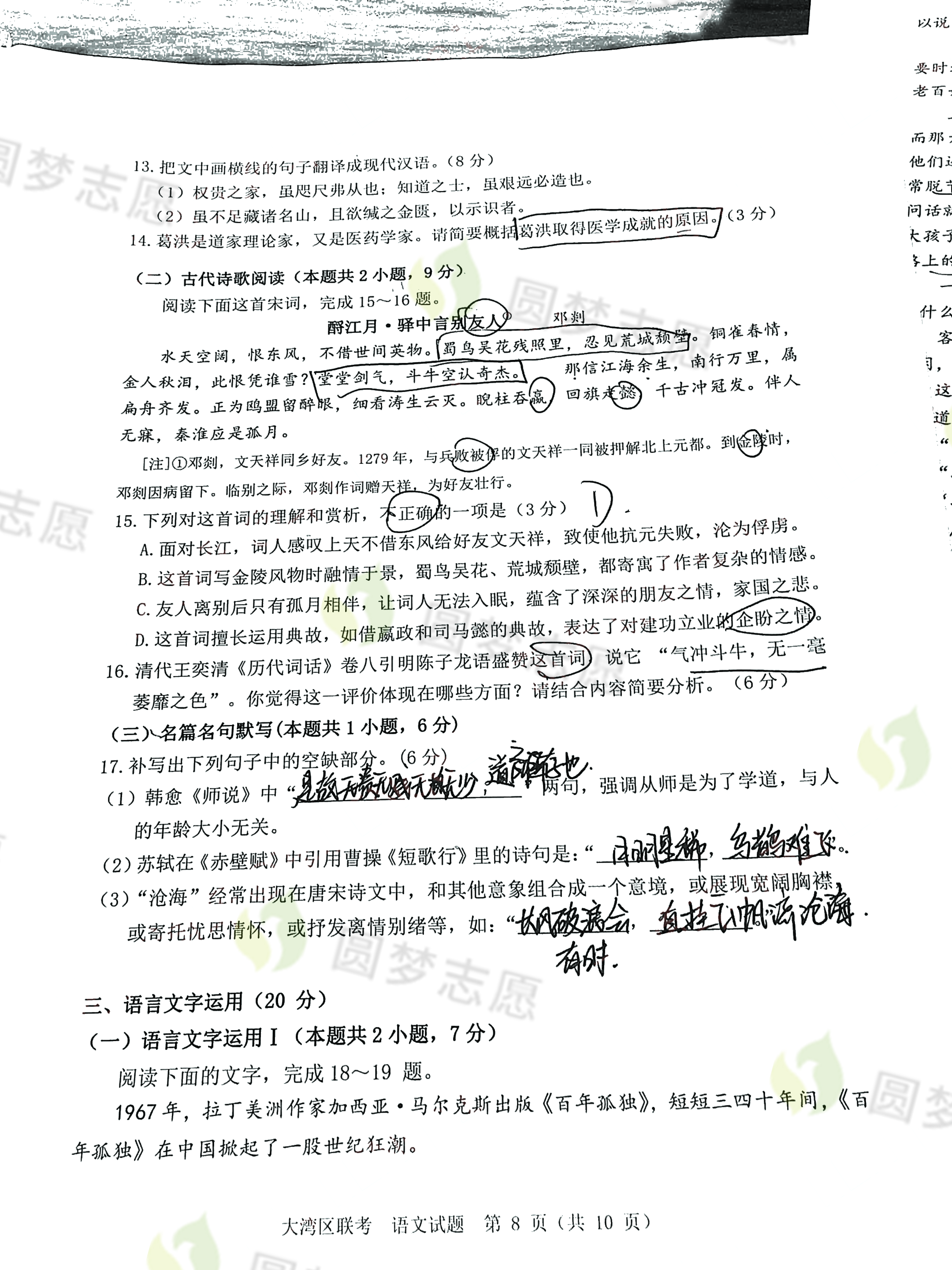 语文试卷及答案解析,高考100网(gk100.com)请大家保持关注!
