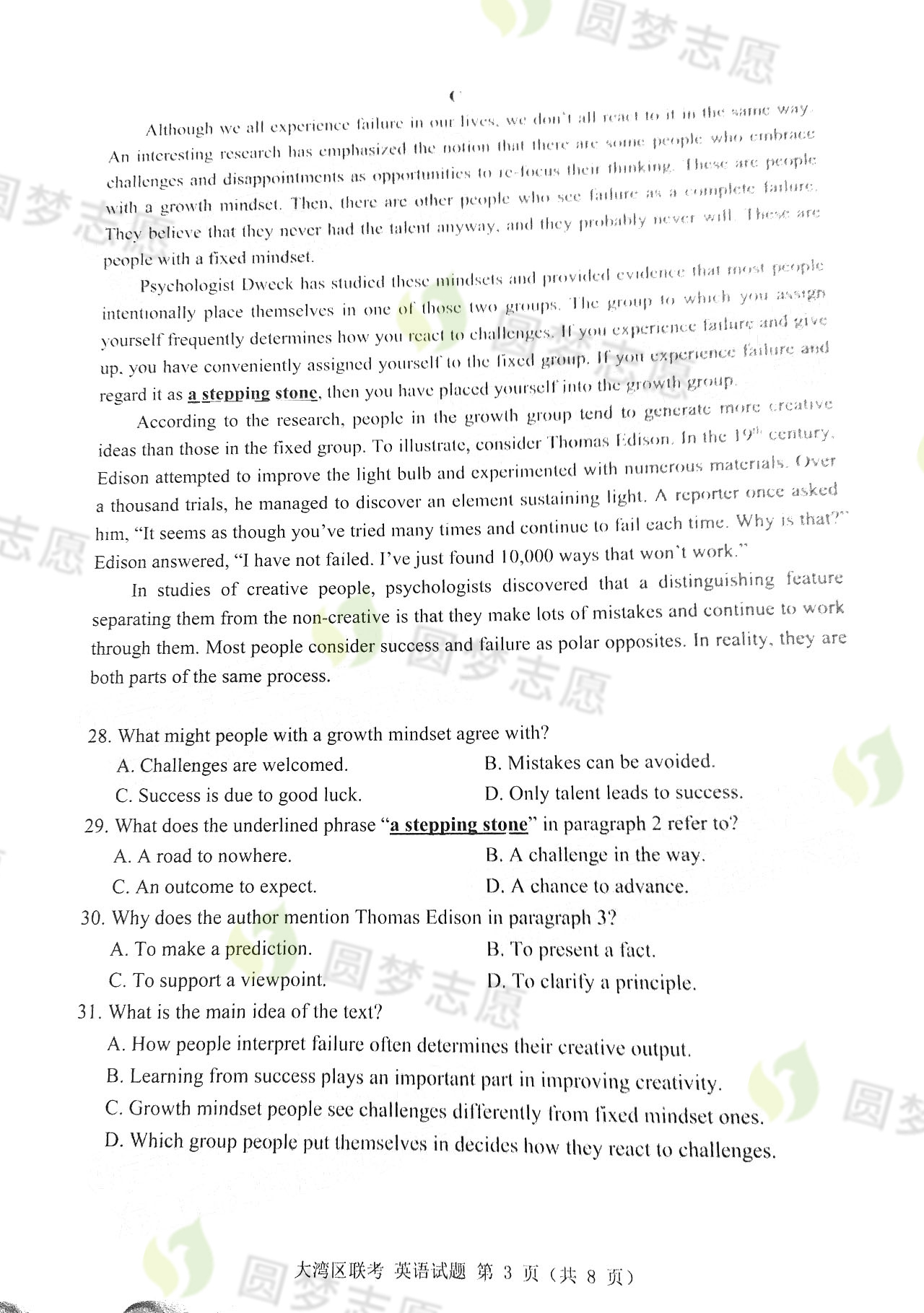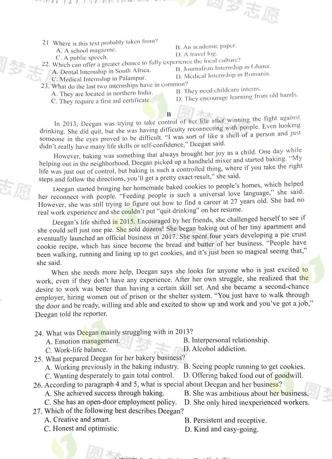 英语试卷及答案解析,高考100网(gk100.com)请大家保持关注!