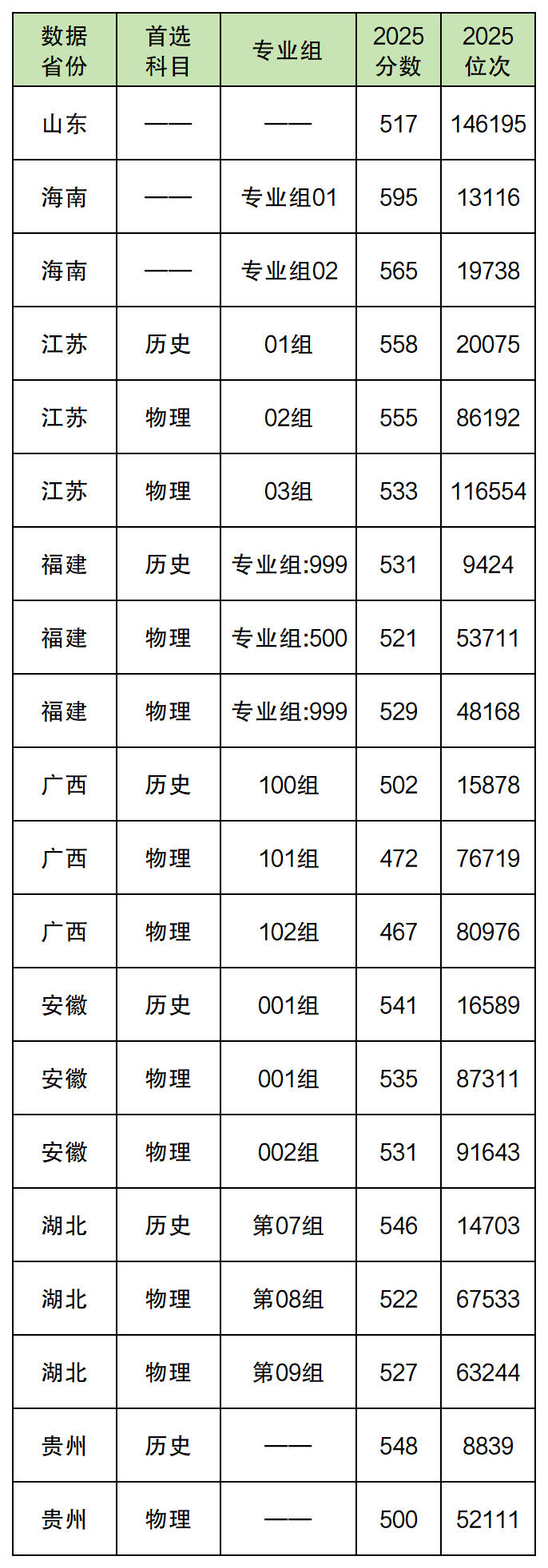 2025年湖北警官学院在全国本科批的录取分数线位于467分~595分之间,不过招生地区比较少,只在8个地区招生,具体的分数线如下: