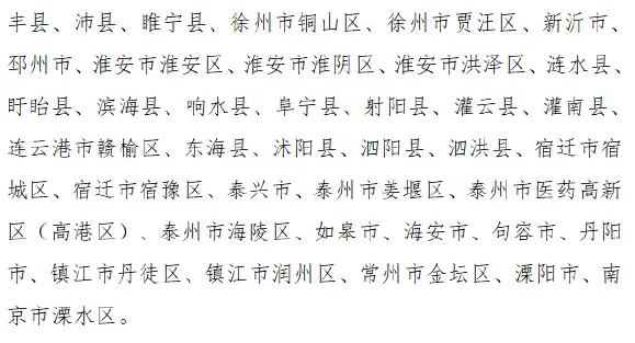 徐州:丰县、沛县、睢宁县、铜山区、贾汪区、新沂市、邳州市