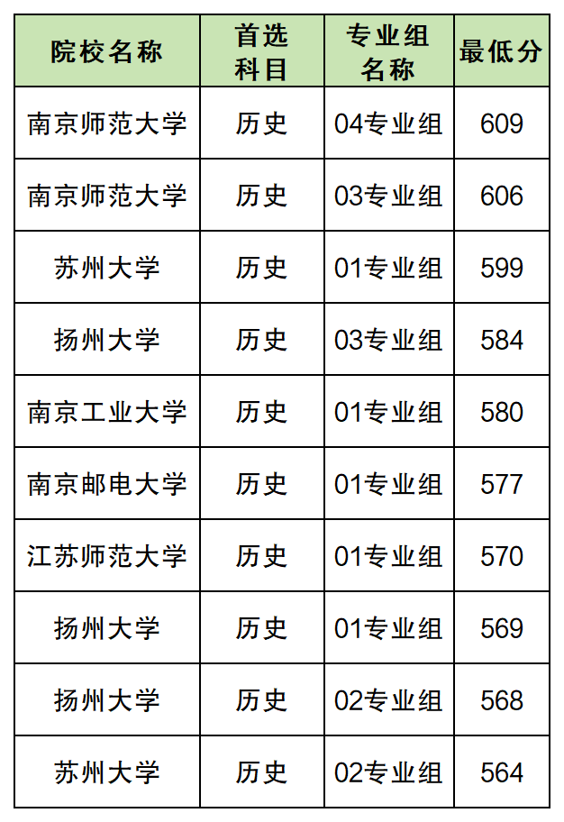 2025年各大学地方专项计划在江苏历史类的录取分数线在564分-609分之间,录取分数最高的是南京师范大学04组,最低分为609分;最低录取分数超过590分的还有: