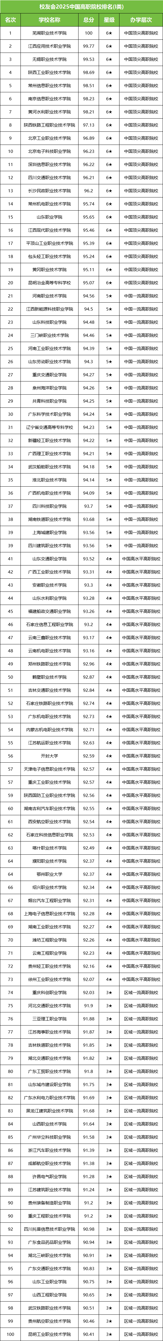 芜湖职业技术学院、江西应用技术职业学院、无锡职业技术学院、陕西工业职业技术学院、常州信息职业技术学院、南京信息职业技术学院、黄河水利职业技术学院、陕西铁路工程职业技术学院、北京工业职业技术学院、北京电子科技职业学院。