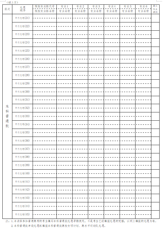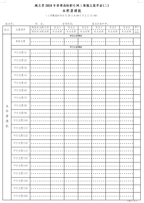 三、湖北高考志愿填报样表