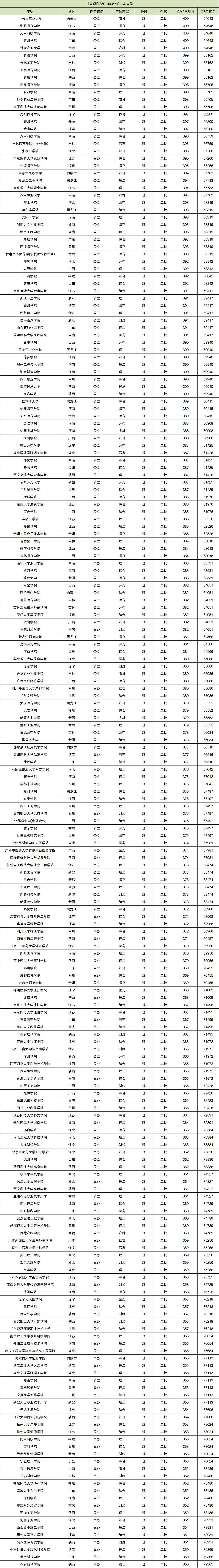 2021年甘肃理科本科二批的分数线为336分,所以350-400分是能够上二本大学的,根据统计,2021年甘肃理科350-400分的二本大学一共有211所,其中公办大学110所,民办大学101所,虽然数量确实不算少,但是大多数公办大学都集中在370分以上,350-370分左右的二本公办大学数量是比较少的,所以处于这个分数段内的考生竞争是非常激烈的。