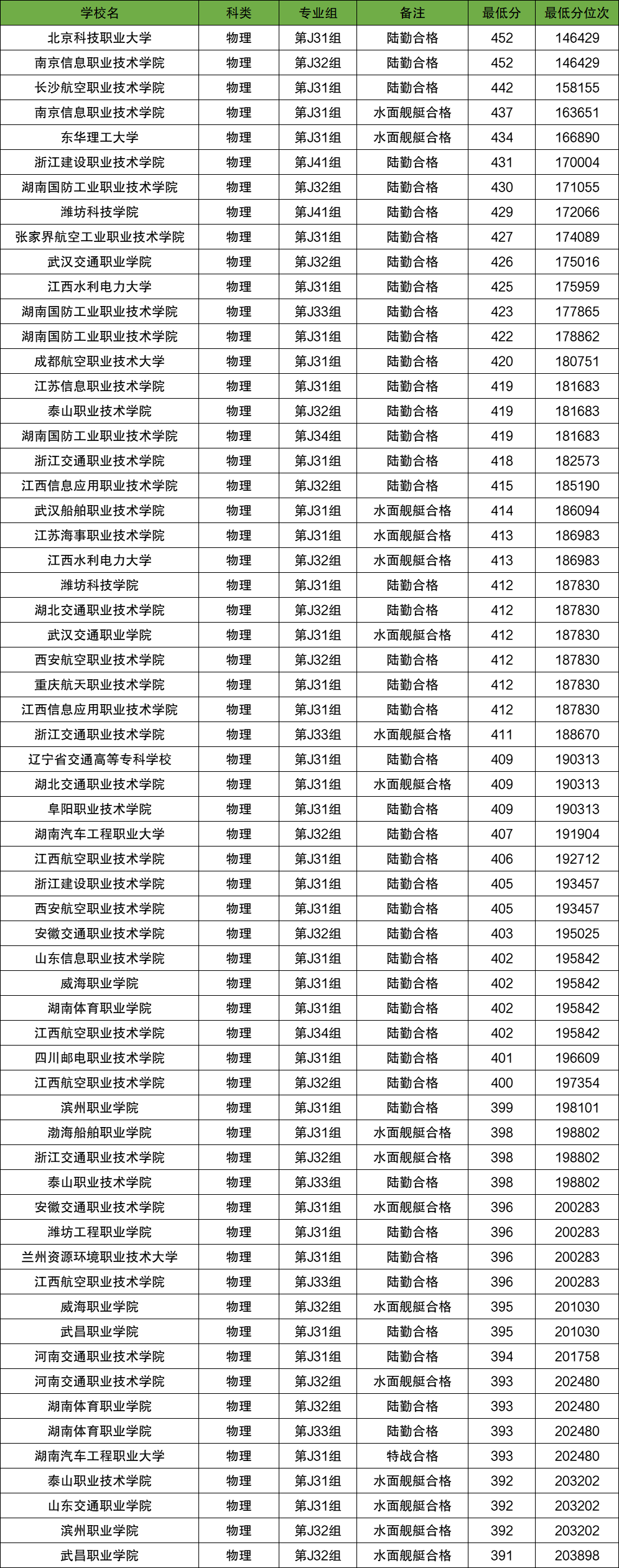 物理类高分段的定向培养士官大学专业组有:北京科技职业大学第J31组、南京信息职业技术学院第J32组、长沙航空职业技术学院第J31组等,这些大学专业组2025年高考最低录取分数线均在440分及以上。