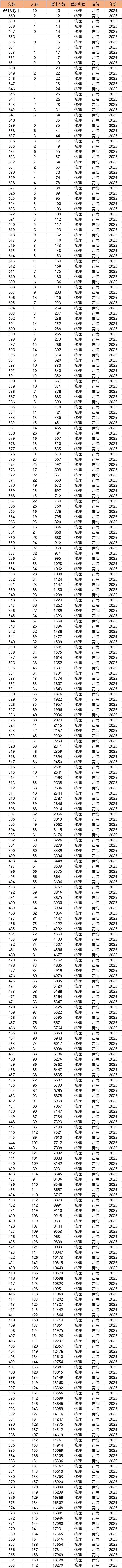 2025年青海高考物理类600分对应258名、550分对应1180名、540分对应1509名、530分对应1876名、520分对应2311名、510分对应2787名、500分对应3339名,更多分数段详情见下表: