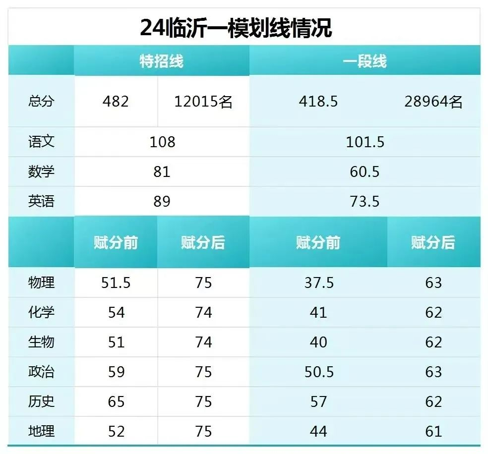 2025年临沂一模分数线划线已公布:特招线为522.5分,全市位次排名为12069名;一段线为475.5分,全市位次排名为29102名。本期将为大家带来临沂一模各科有效分及赋分对照表,并附上近三年的分数线划线表,以供大家参考。