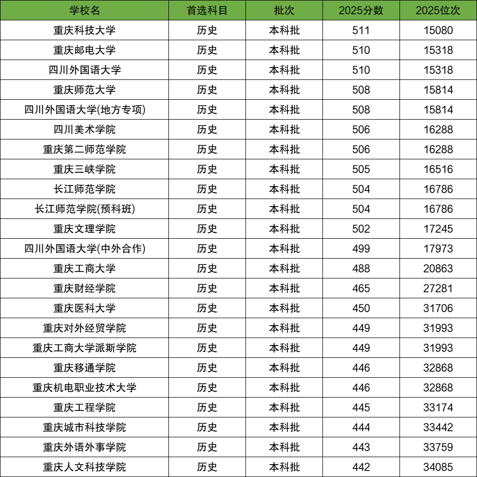 对于历史类高考生来说,重庆高考2025年的二本线是438分,2024年的二本线是428分,重庆高考2023年的二本线是407分。