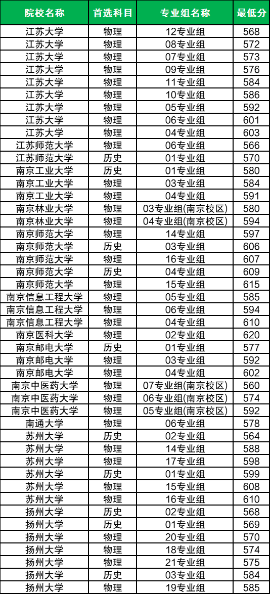 在江苏地方专项招生院校有12个,包含25个专业组,其中面向物理类收分最低的是南京中医药大学07组,2025最低分为560分,超本科线97分录取;面向历史类收分最低的是苏州大学02组,2025最低分为564分,超本科线82分录取。