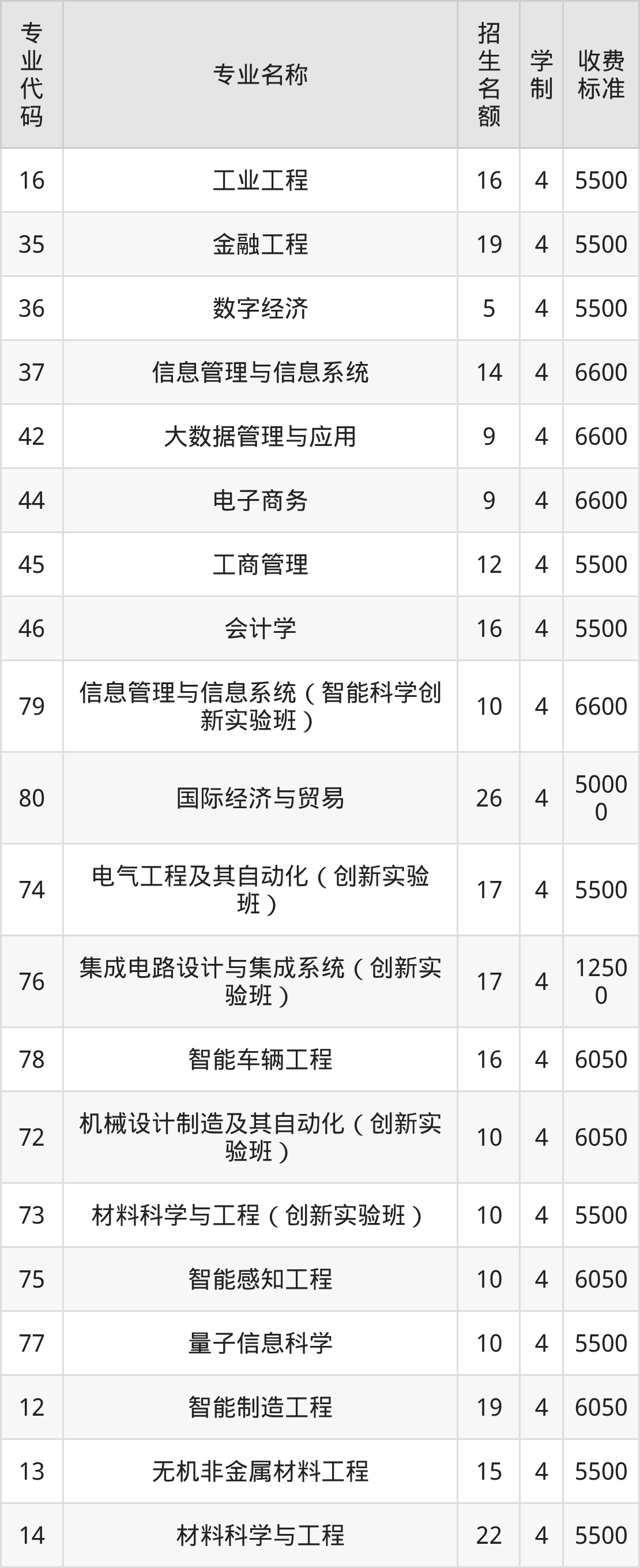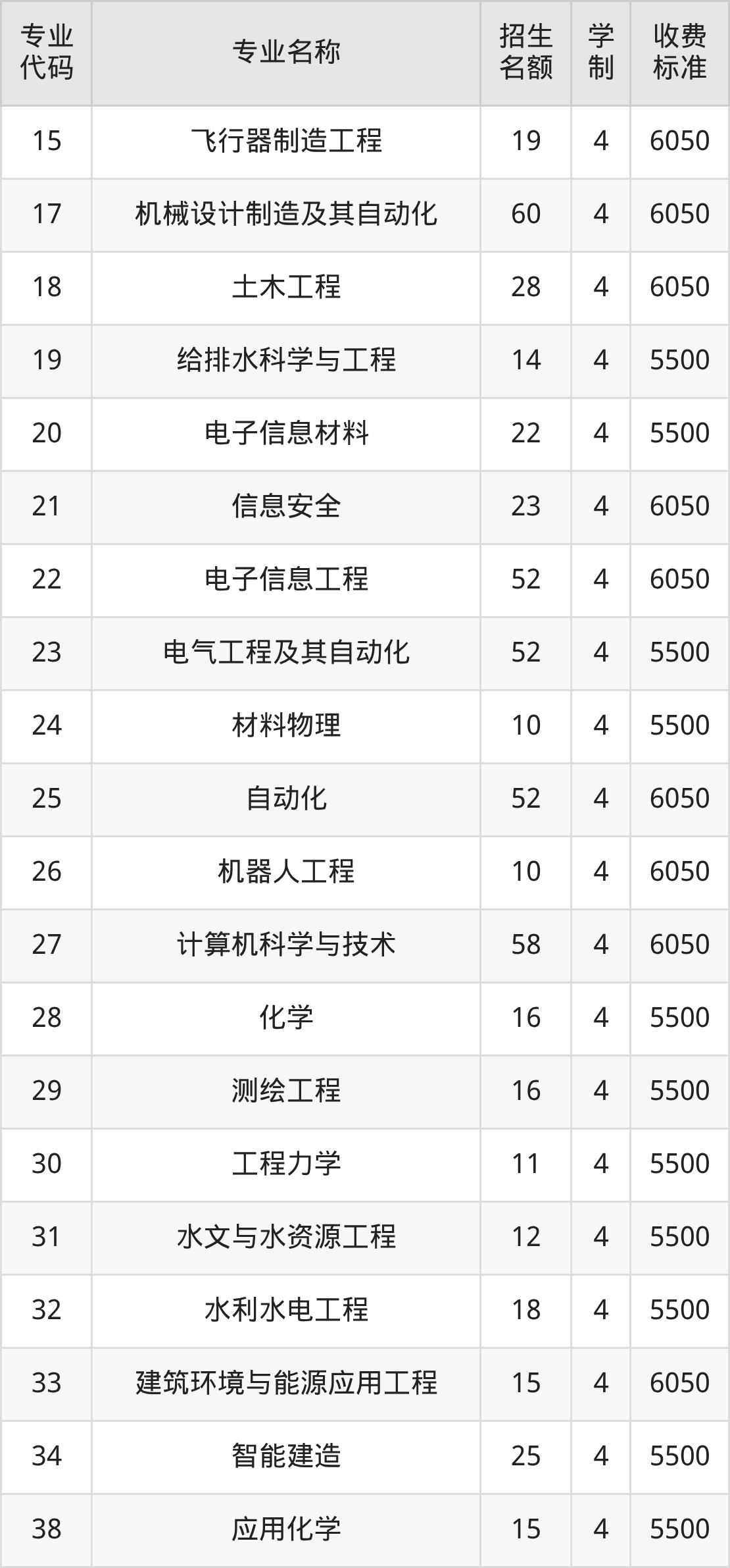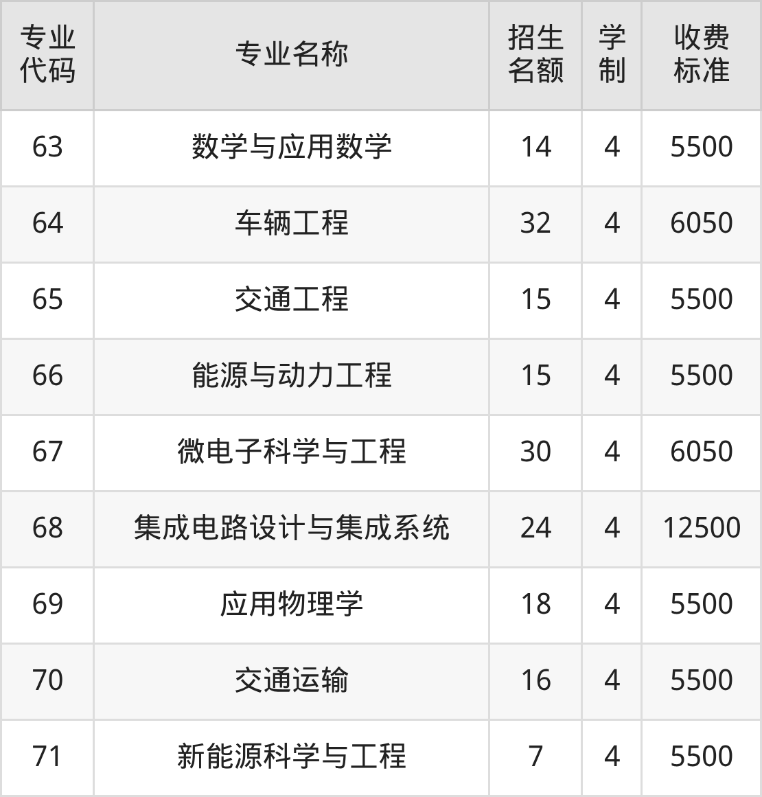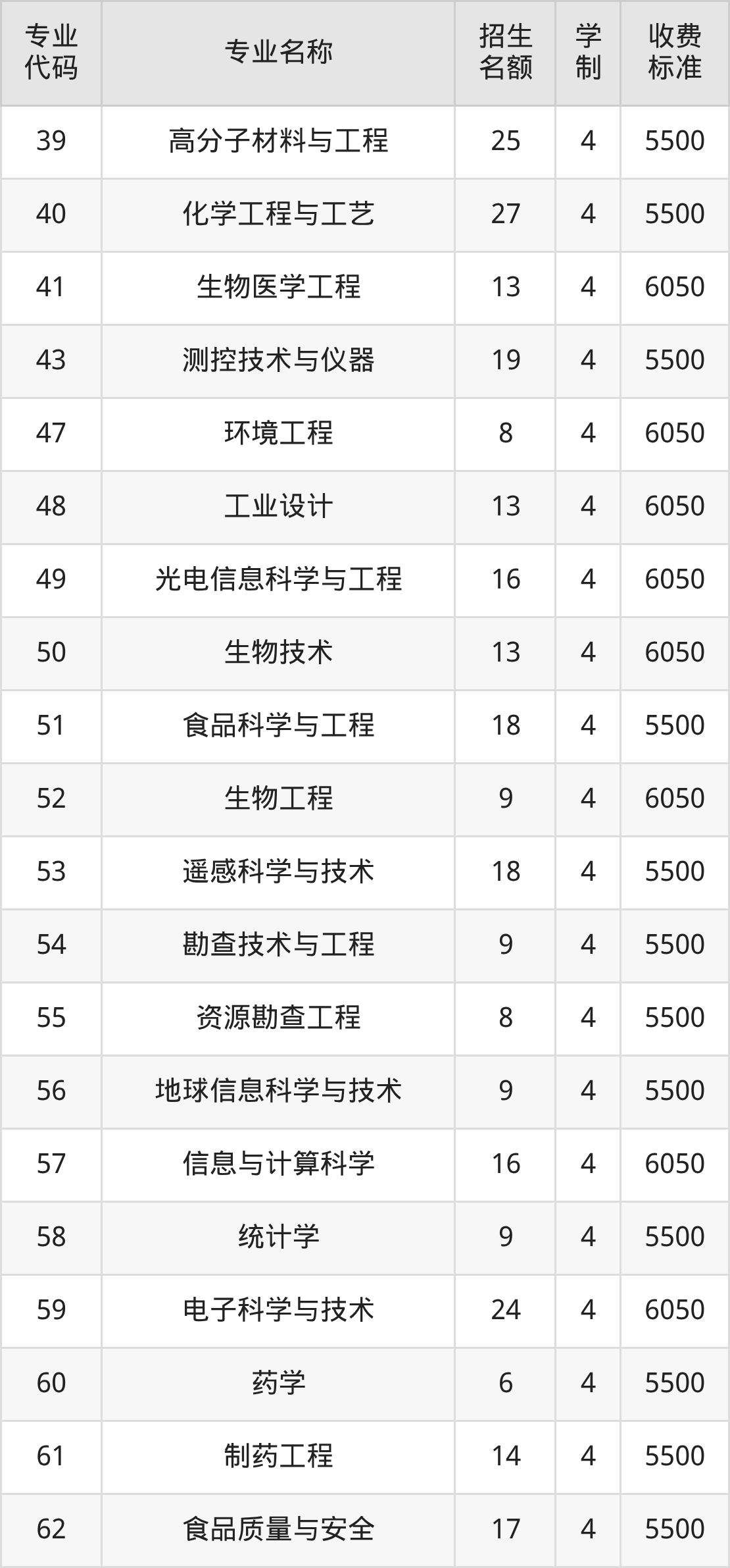 | 专业 代码 | 专业名称 | 招生 名额 | 学 制 | 收费 标准 |
