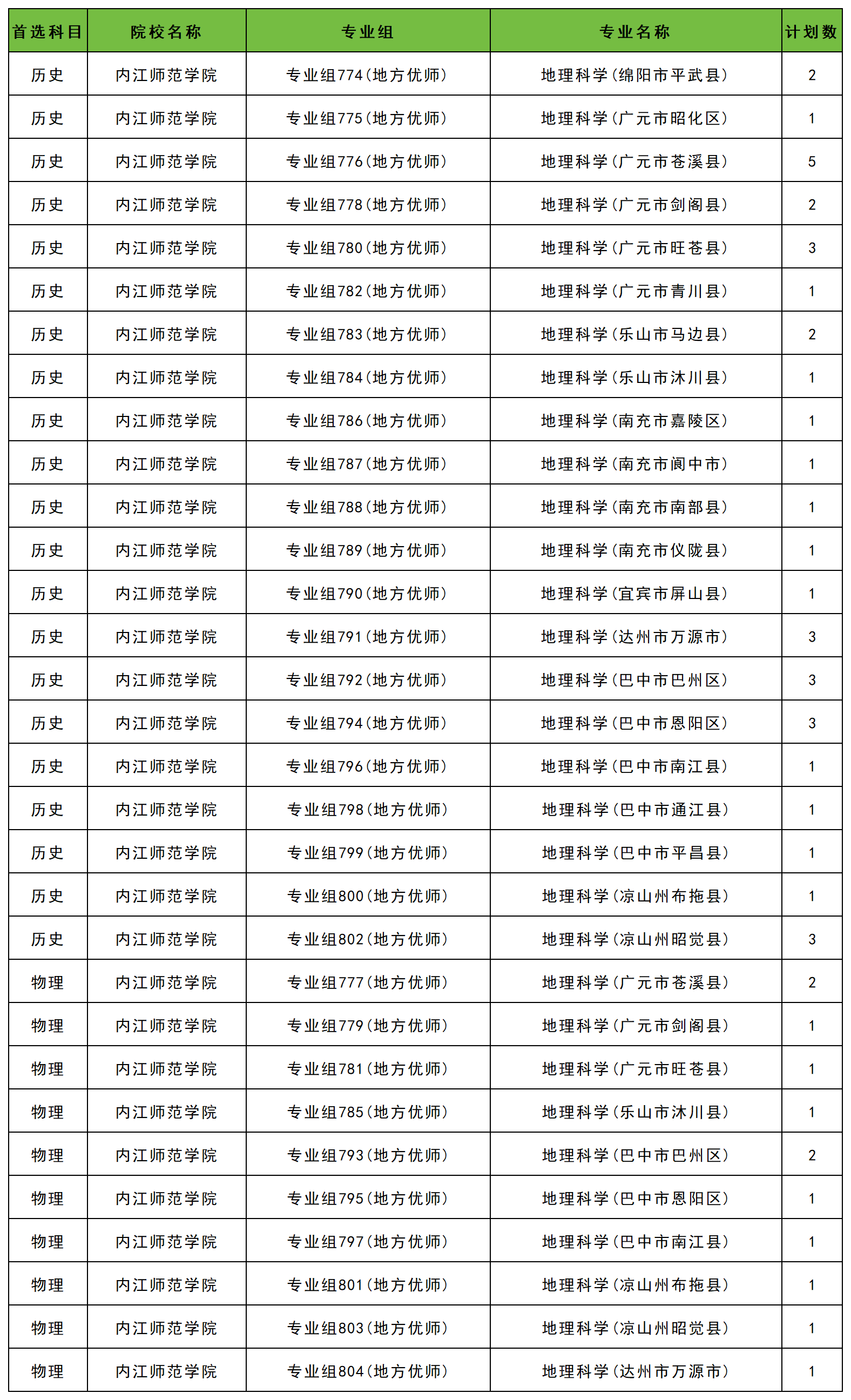 招生院校:四川师范大学、西华师范大学、成都师范学院、内江师范学院