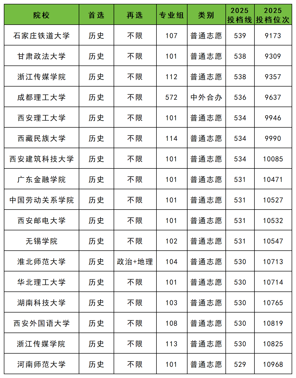 二、陕西历史类位次1万名对应大学