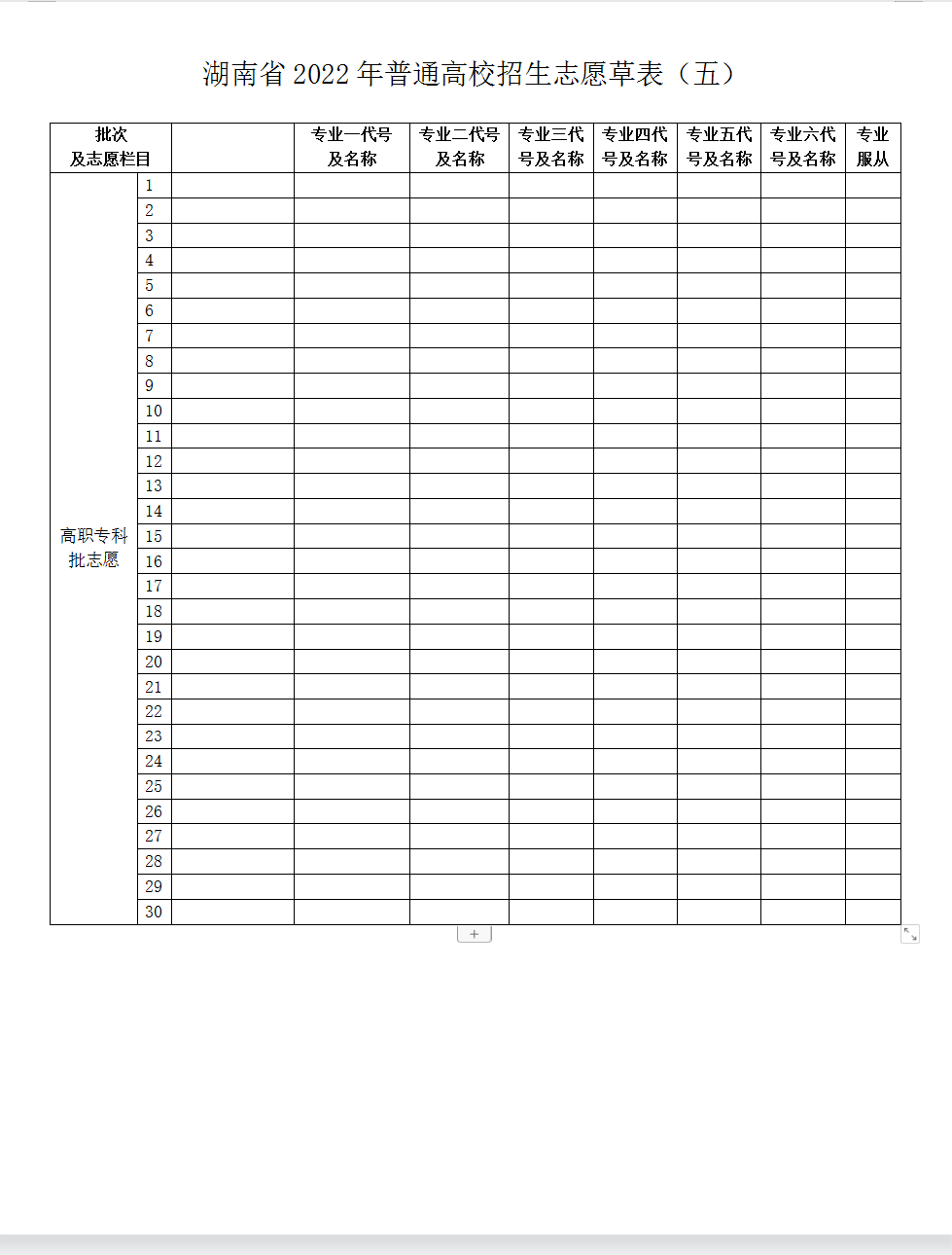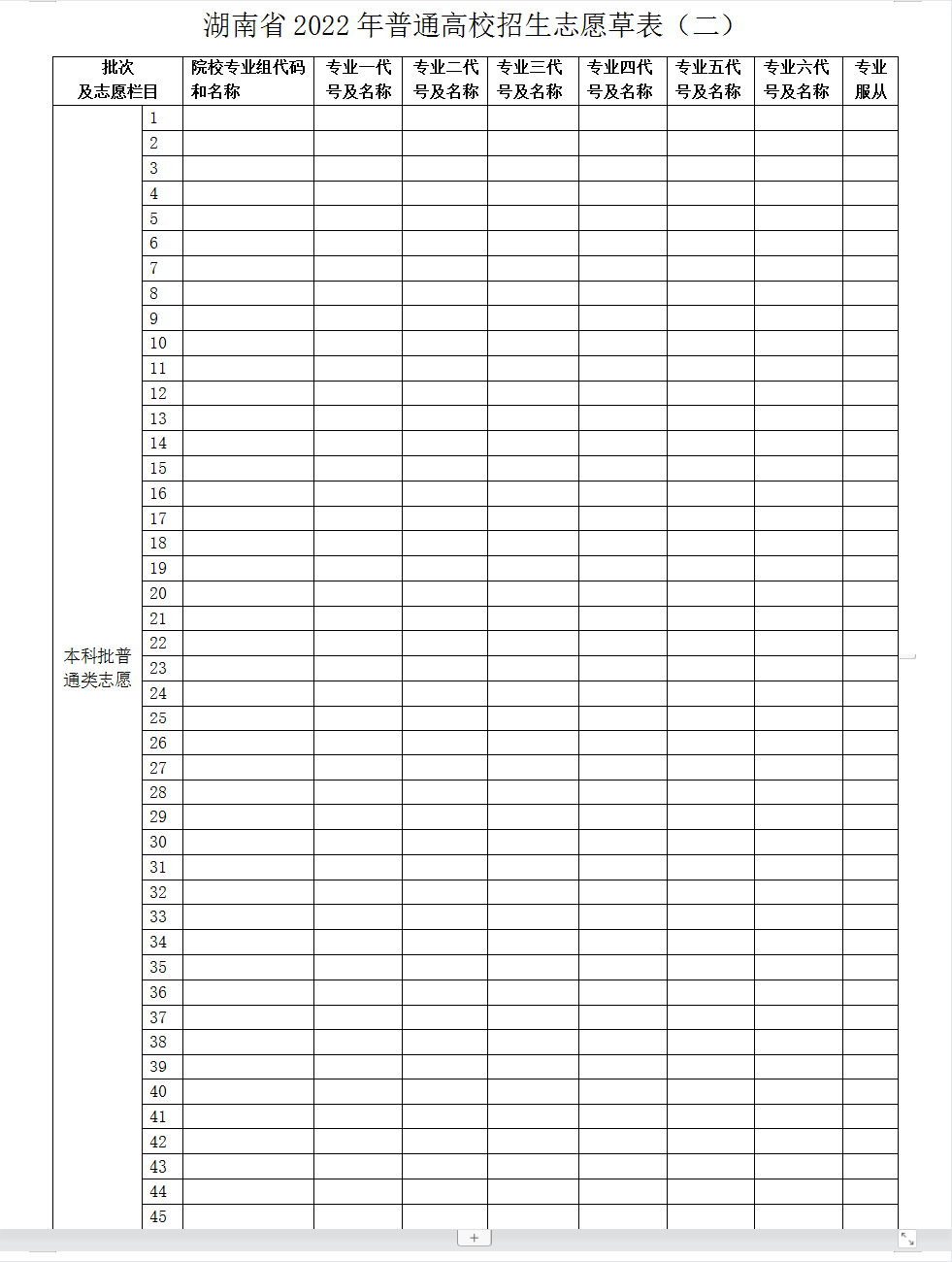 以下为湖南志愿填报中各批次样表:(2024、2023年湖南省志愿样表均未公布,以下为2022年志愿表,供各位参考。)