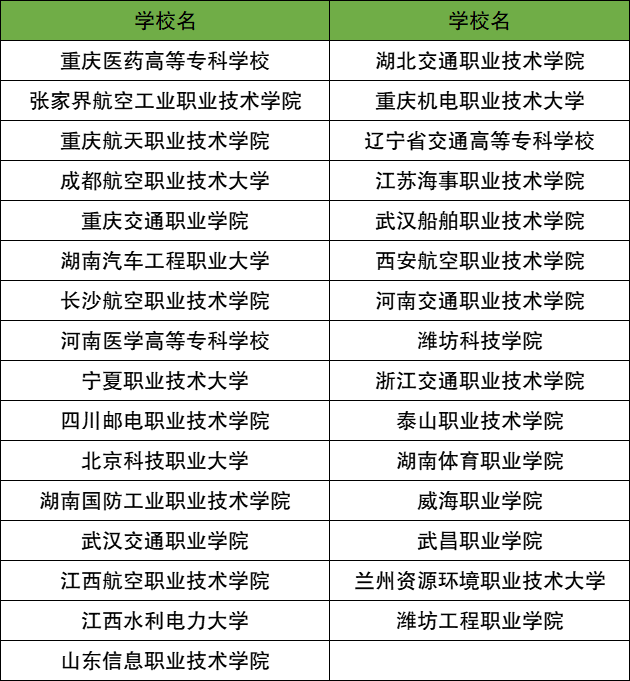 共有31所院校在重庆招收定向士官,其中市内院校有4所,分别为重庆航天职业技术学院、重庆机电职业技术大学、重庆交通职业学院、重庆医药高等专科学校。
