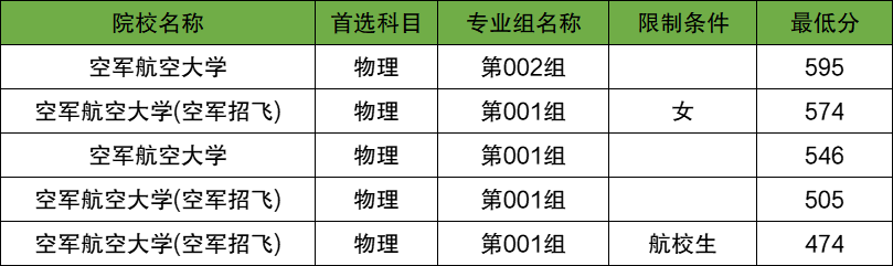 仅有1个专业组(空军招飞)招生,最低分专业组需要569分。