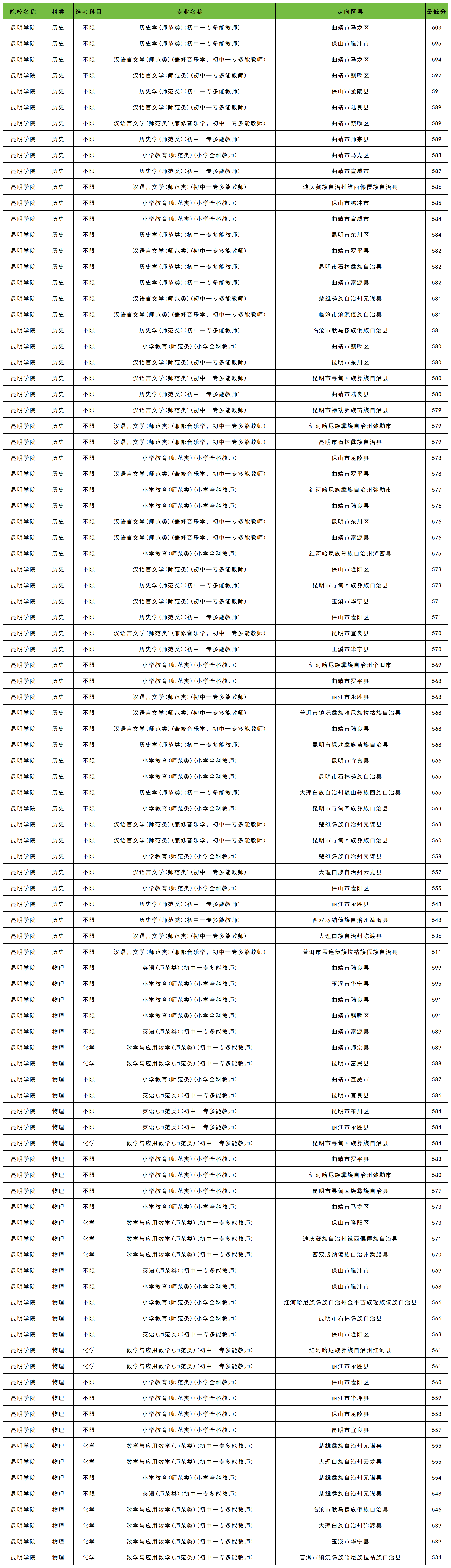 目前仅昆明学院公布了录取分数,历史类、物理类最低分数如下: