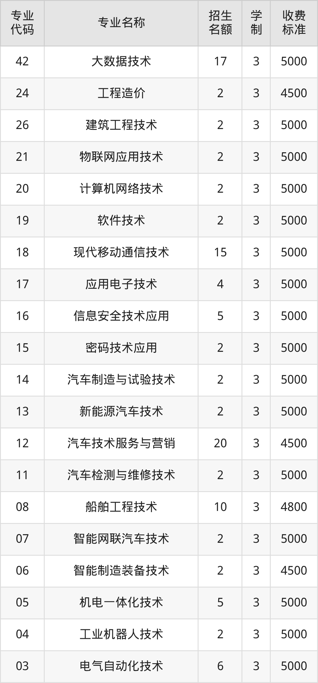 | 03 | 电气自动化技术 | 65 | 3 | 5000 |
