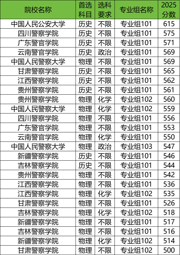 2025年警校录取分数线因院校、首选科目、专业组、性别及岗位限制等多种因素而异。总体来看,不同院校、不同专业组之间的分数线存在显著差异。